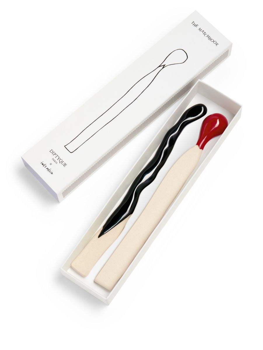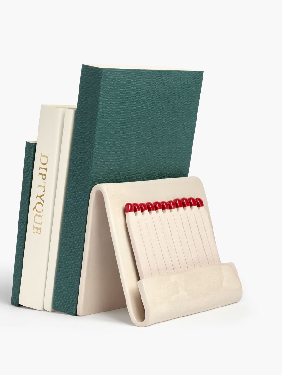 「ディプティック」一部店舗と公式オンラインストア限定のアイテムとして、ワックスが溶けたようなデザインのキャンドルホルダー(1万3200円)、 マッチボックスの形に着想を得たブックマーク(2万9700円)とブックエンド(5万7750円)を用意する。