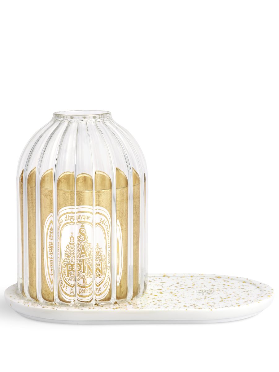 コレクションの中心となるのは、新鮮なモミの木を連想させる冬の香り“サパン”。シベリア松とバルサムモミのみずみずしいノートに、シダーの樹脂のようなウッディなニュアンスを組み合わせ、ベースにはモス(苔)のアクセントを加えた。金色の装飾を手作業で施したフレグランスキャンドル(70g、7480円/190g、1万2650円/1.5kg、5万5770円)やルームスプレー(50mL、7480円)、ホワイトセラミック製の楕円形ケースの中にワックスを詰めた“香りのオーバル”(1万10円)で用意する。