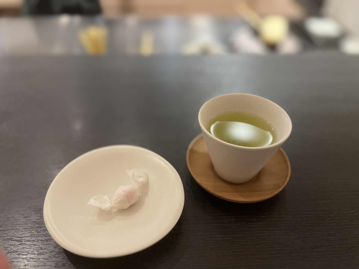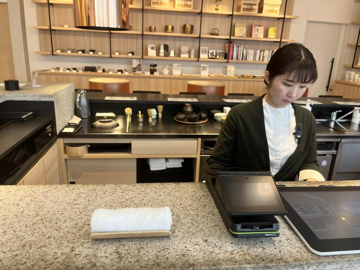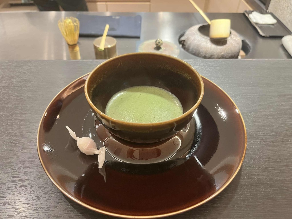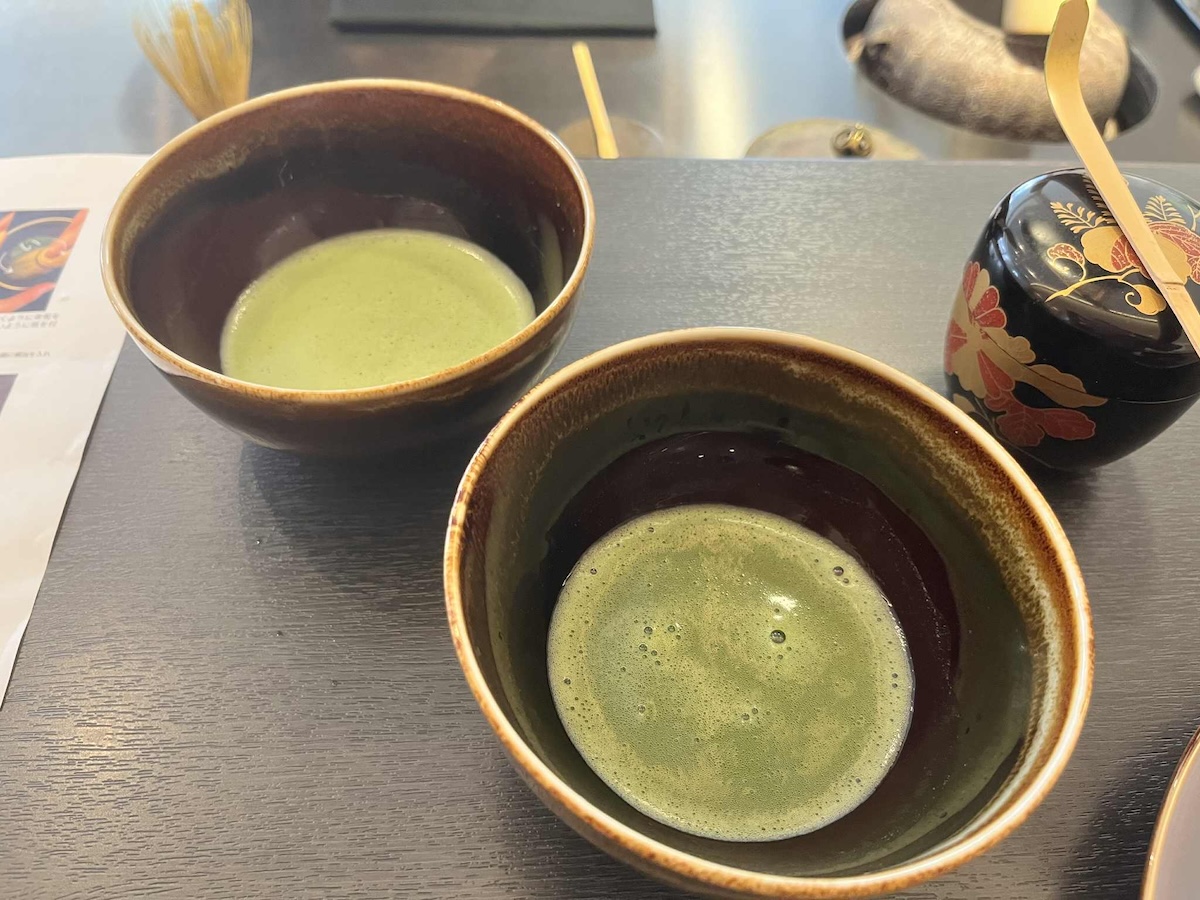 2度目のバスタイムを満喫した後は、いつもより早めに就寝。眠りはいつも以上に深かったと思う。翌日は日の出と同時にすっきり目覚め、7時半には2階のティーカウンターへ。お茶と眠りのご自愛ステイのプランでは、茶バリエによるお抹茶体験「ご褒美の一服」を予約不要で参加できるのだ。これは初心者でも学べる約30分のレクチャー。心を整え、茶せんを手にしてお抹茶を点ててみる。お湯を入れるタイミング、茶せんの持ち方や点てるコツなどを一通り教えてもらうのだが、お手本と比べるとそのできは一目瞭然(笑)。それでも自分で点てたという達成感があり、自宅でもお抹茶タイムを取り入れてみようかな、なんて思う。実際、ショップで販売しているお点前セットを購入し、自宅で実践するゲストも多いのだそう。