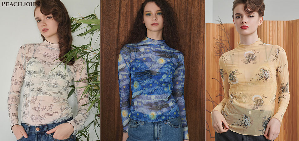 ほか、世界中の偉大な芸術家の傑作をプリントしたアートなトップス“巨匠のシアートップス”(3800円)も同時発売した。シアー素材のため柄が主張しすぎず、透け感を生かした重ね着コーディネートが楽しめる。