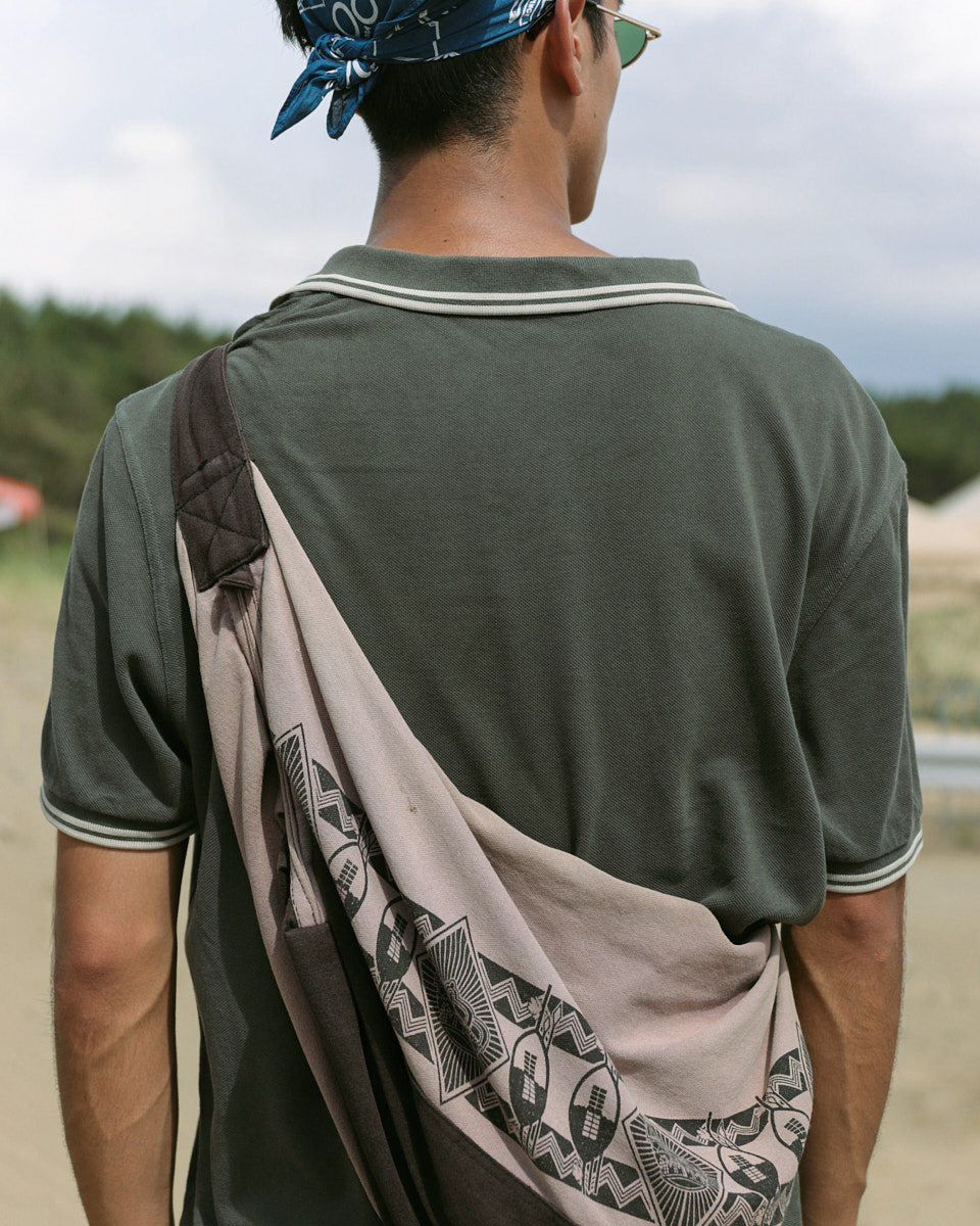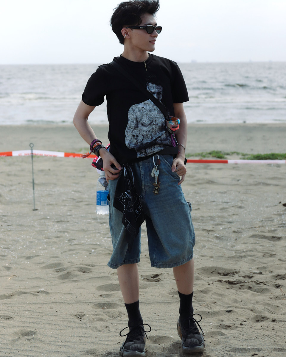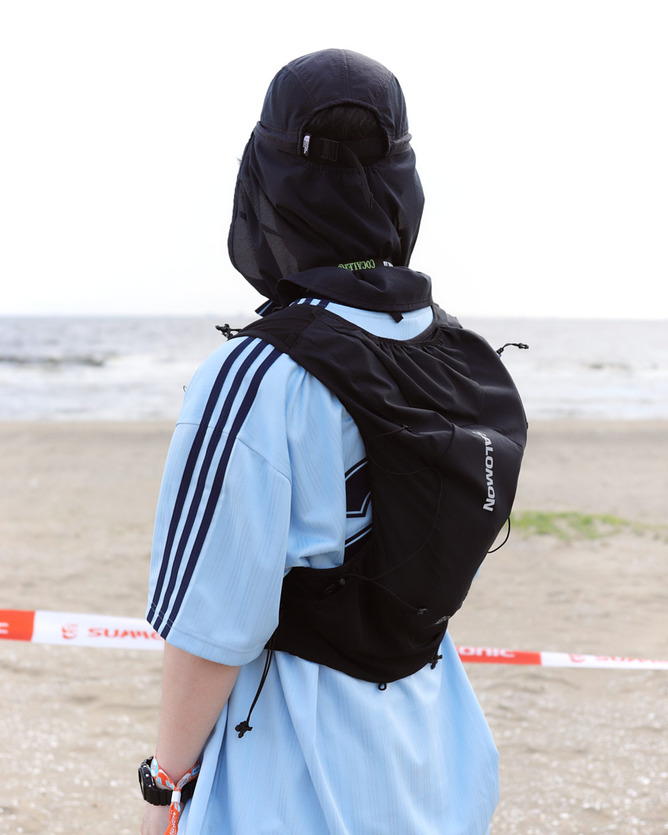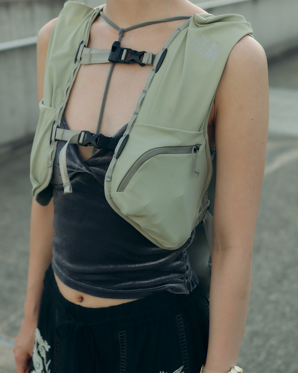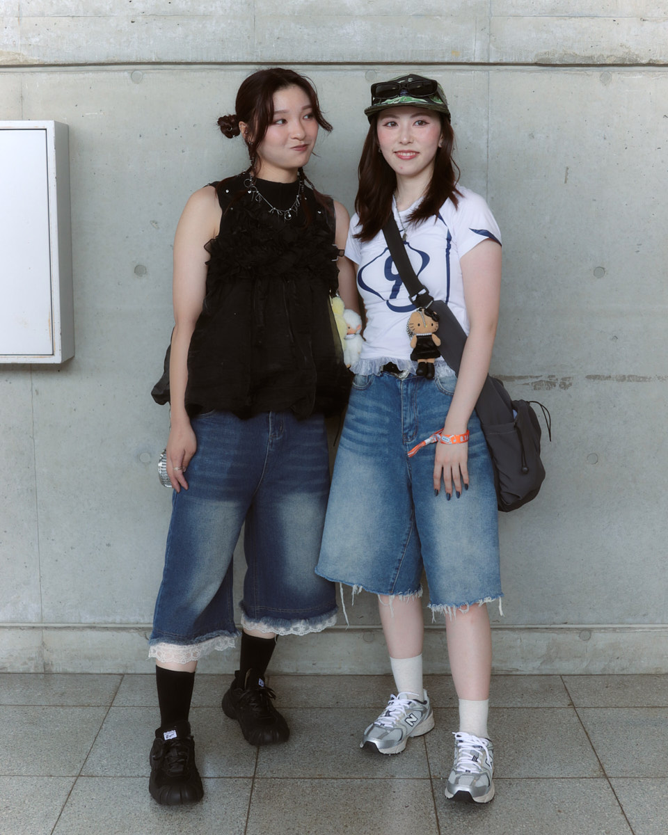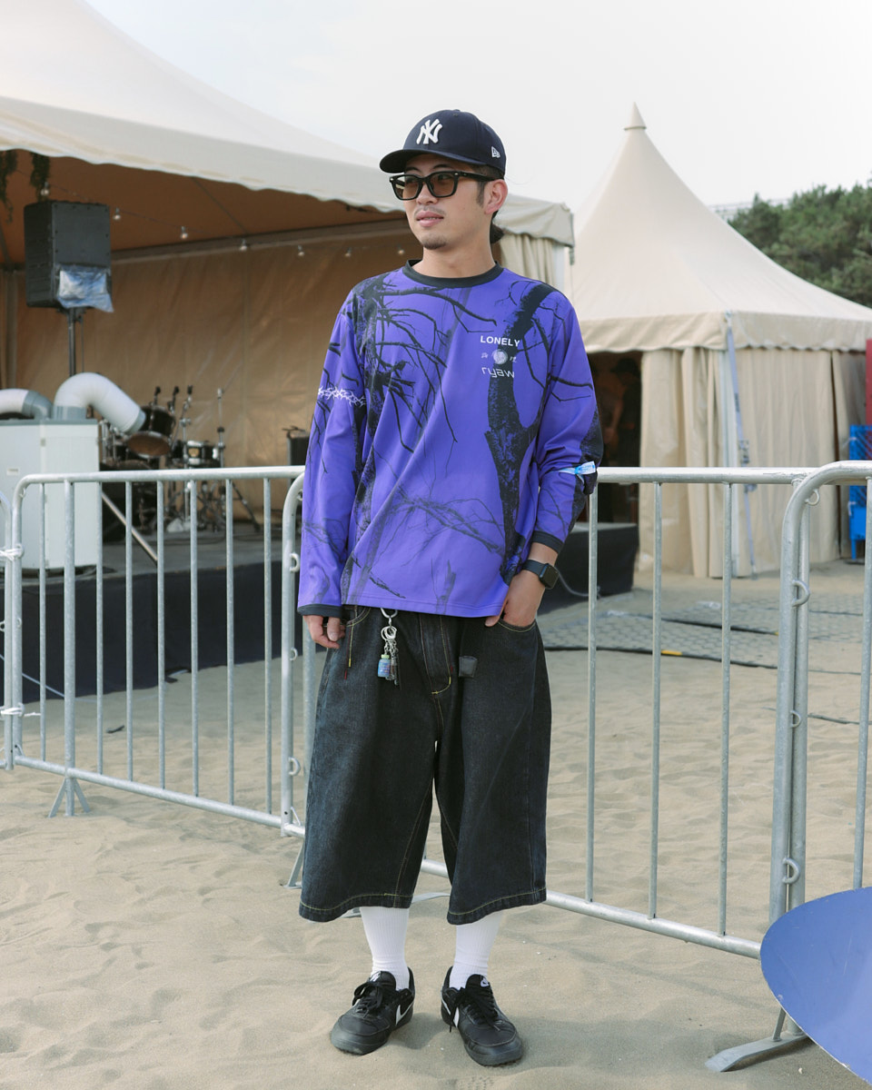 会場で目を引いたアイテムは、“フェスバッグ”の新顔としてじわじわ人気を集めているナップサックやランニングバッグだ。軽やかなスタイリングに合わせやすく、都市型フェスならではのコンパクトな荷物にちょうどいいサイズ感とあって、多くの若者が背負っていた。