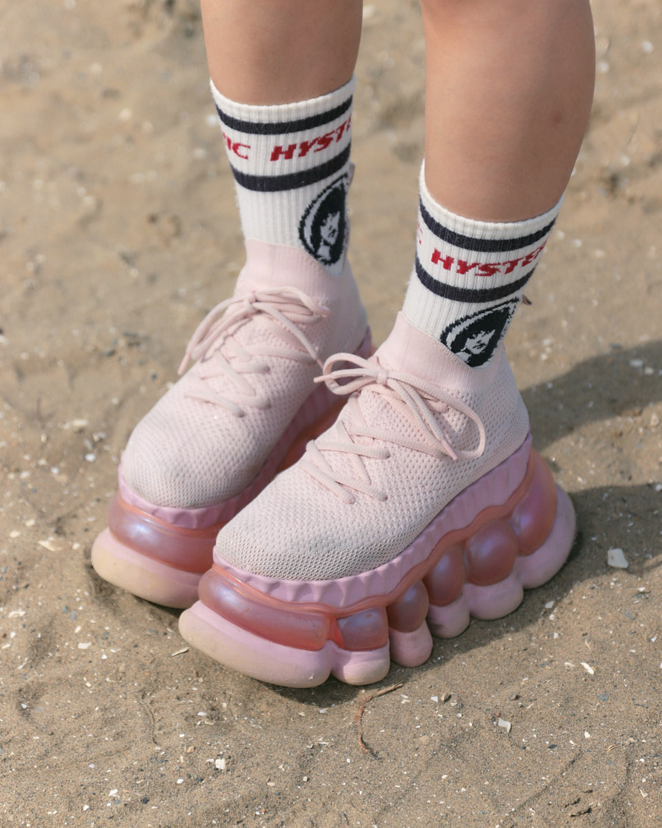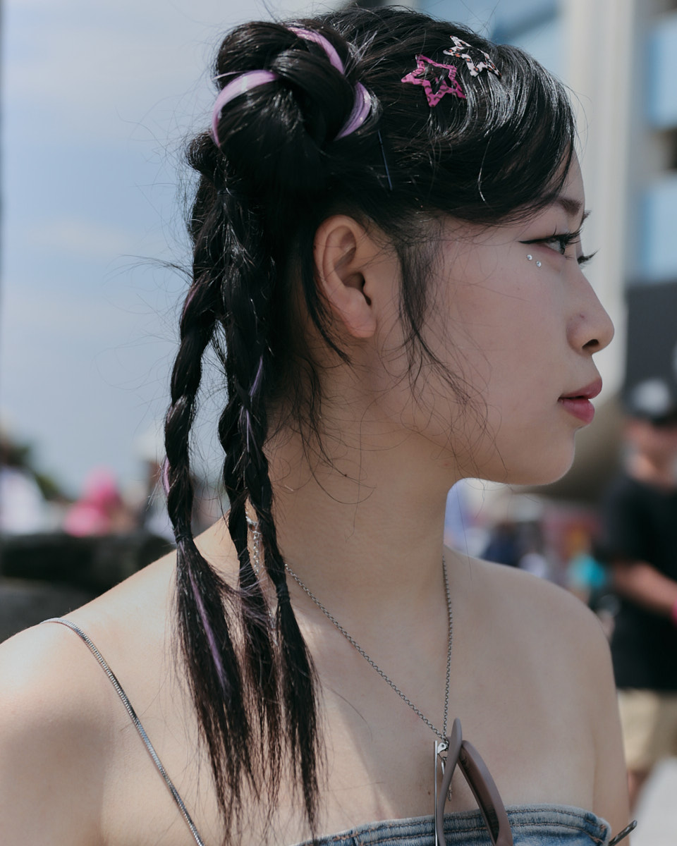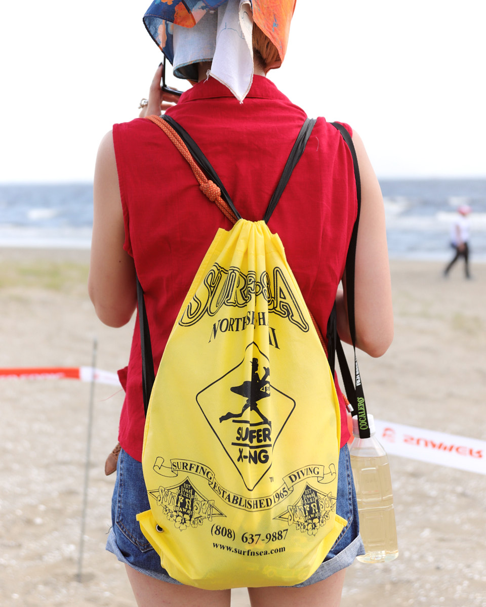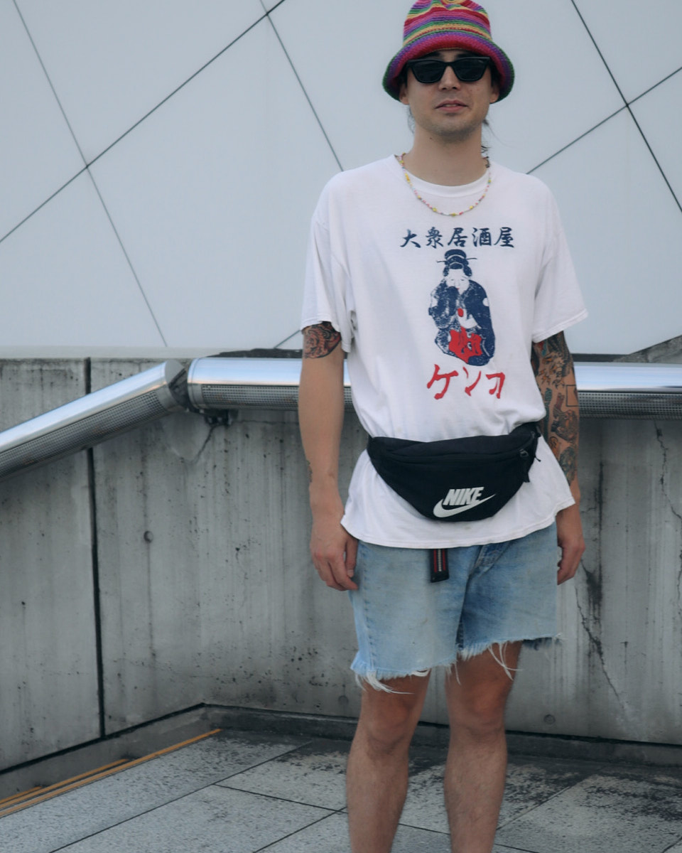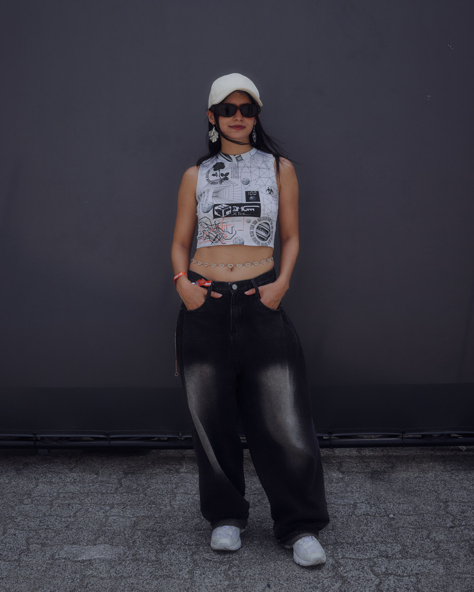 会場で目を引いたアイテムは、“フェスバッグ”の新顔としてじわじわ人気を集めているナップサックやランニングバッグだ。軽やかなスタイリングに合わせやすく、都市型フェスならではのコンパクトな荷物にちょうどいいサイズ感とあって、多くの若者が背負っていた。