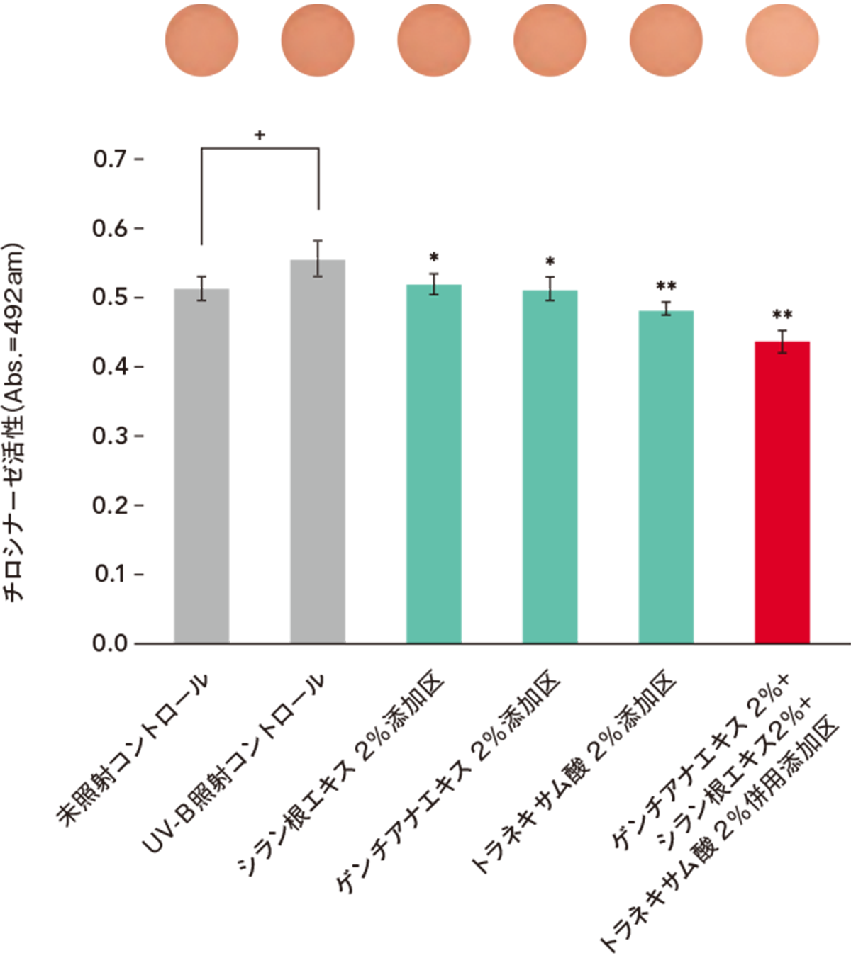 「ルートW®※」が抗酸化・抗炎症に作用して肌の土台が整うことで、美容主成分ビタミンCやグリチルリチン酸2K、トラネキサム酸などが単体で配合する以上の効果を発揮する。「ルートW®※」と美容主成分のシナジー効果を「Wアプローチ技術」とし、効果的なブライトニングへのアプローチを明らかにして論文発表を行った。引き続きほかの美容成分との相乗効果を検証する。