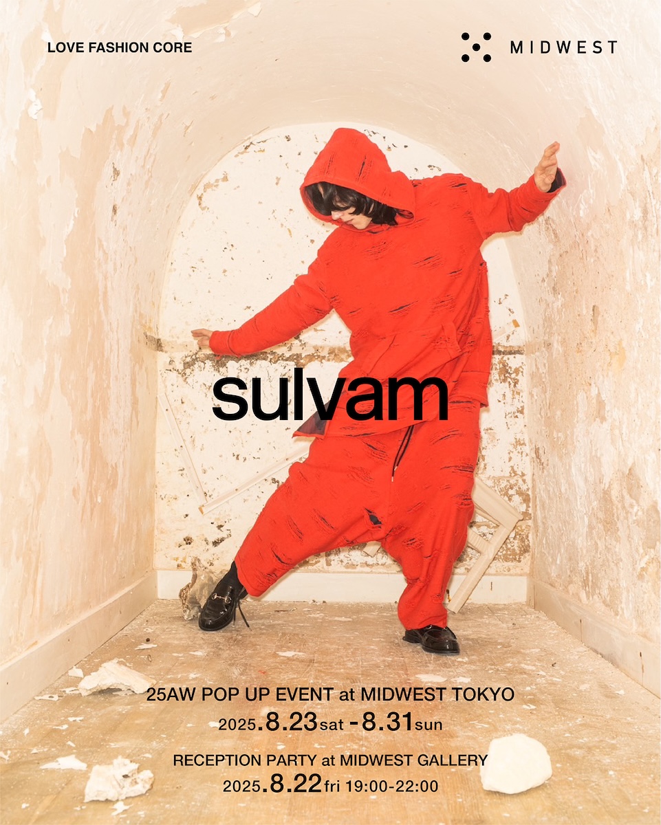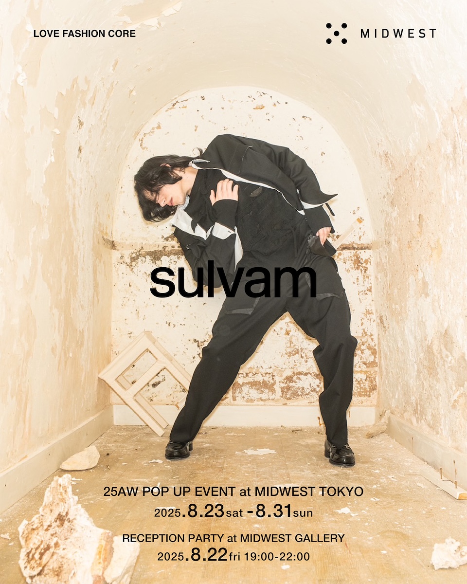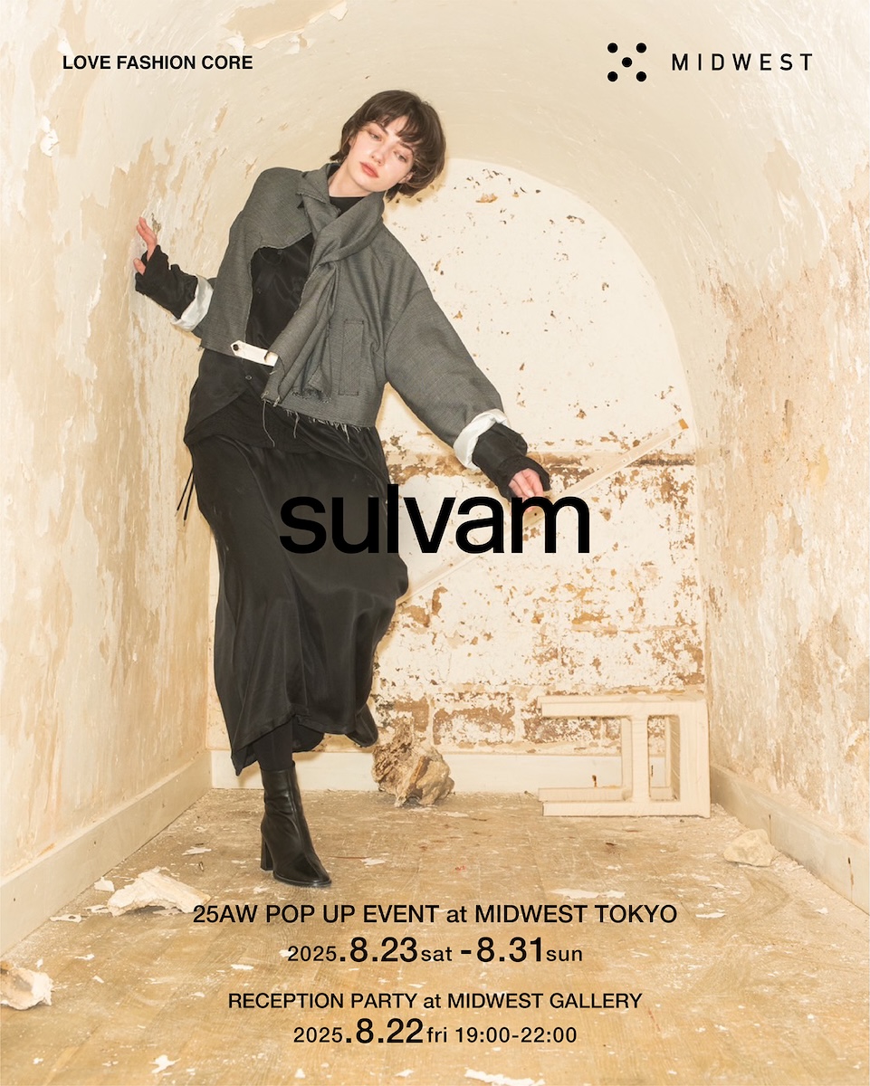 セレクトショップのミッドウエスト(MIDWEST)は8月23〜31日、「サルバム(SULVAM)」のポップアップイベントを開催する。会場は渋谷のミッドウェストギャラリー3階で、「サルバム」2025-26年秋冬コレクションや別注アイテムを販売する。また8月22日19〜22時、レセプションパーティーを開催する。