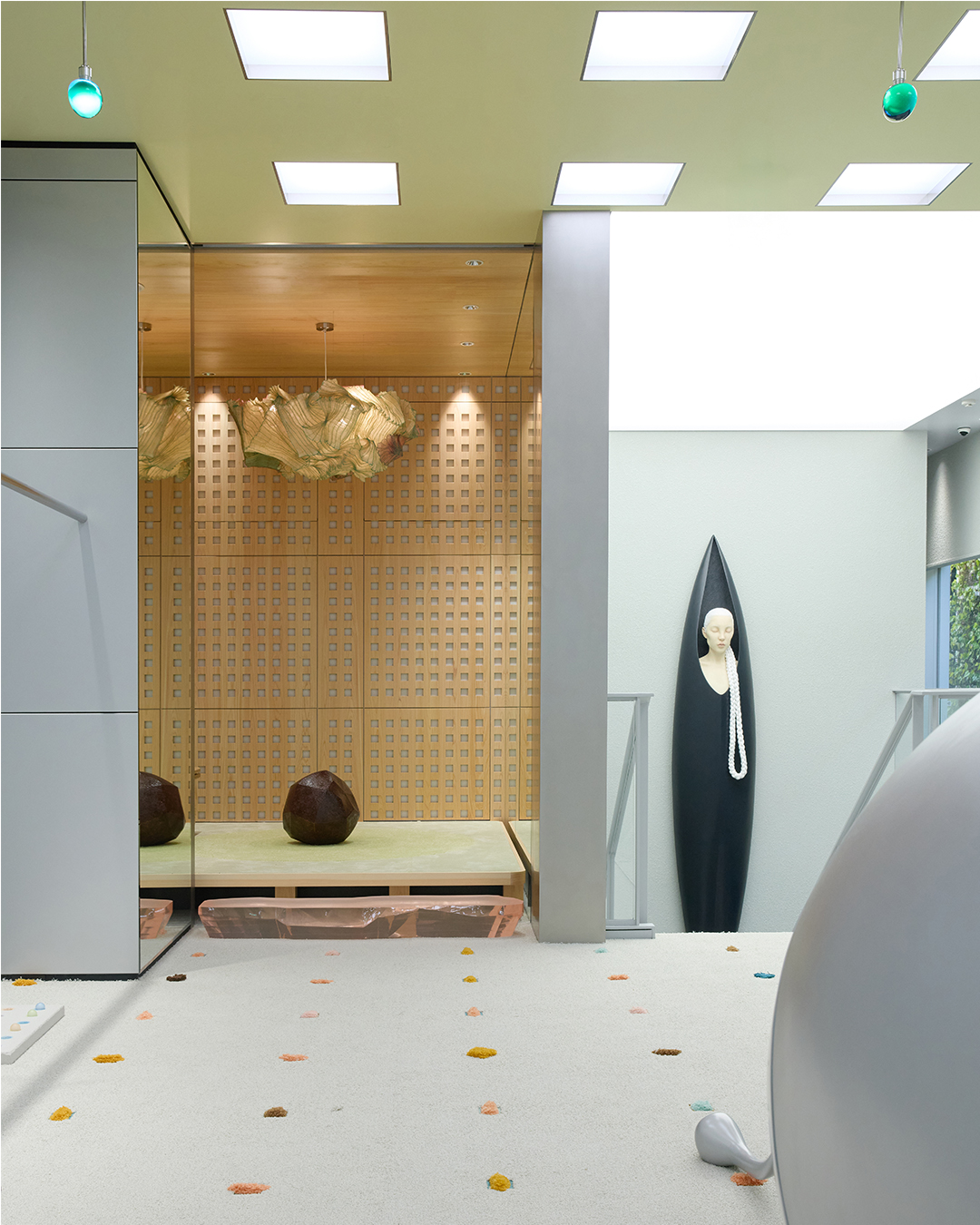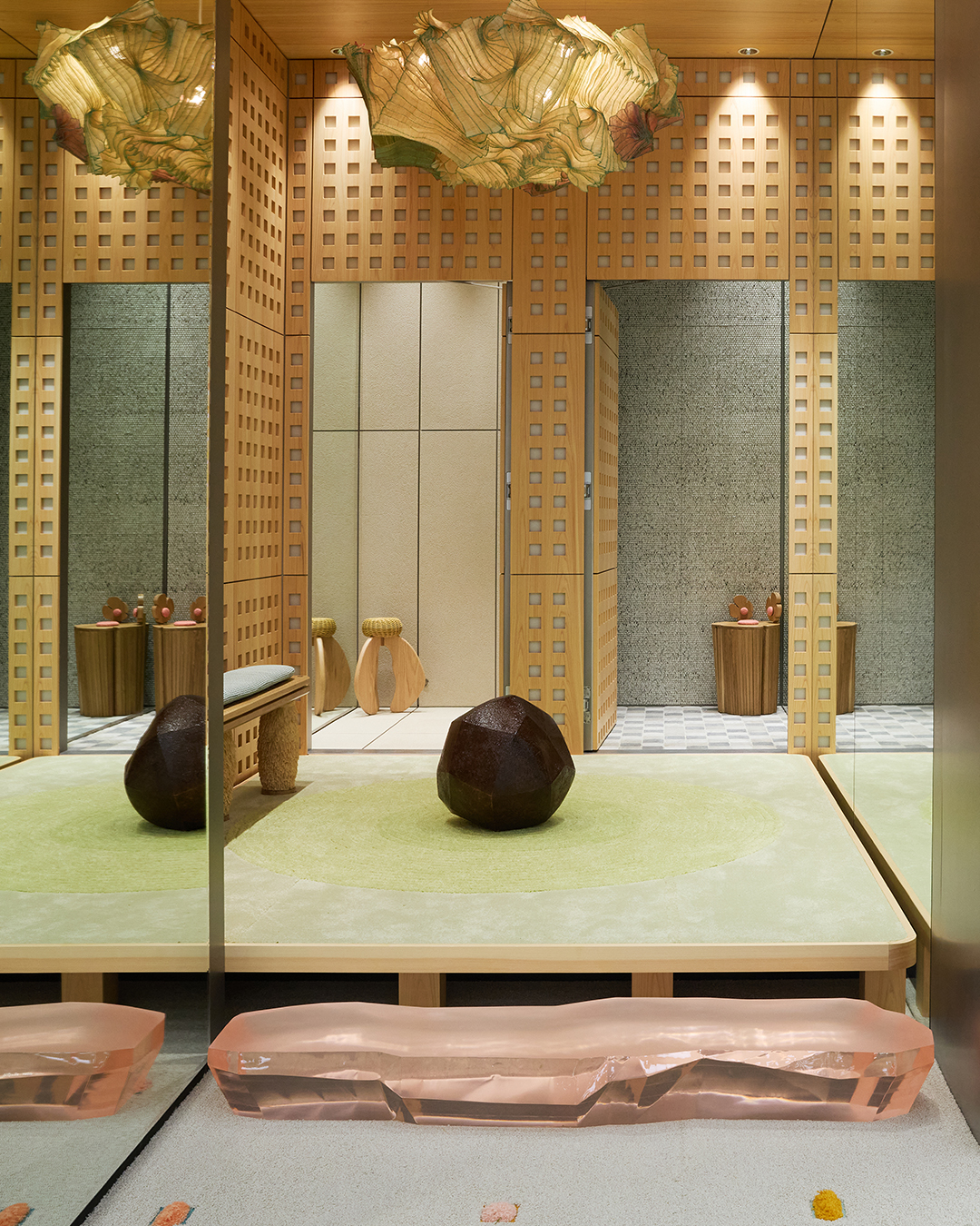 さらに、9人のアーティストたちが“コンティニュアム”というコンセプトに自身のシグネチャー素材やクリエイティブを掛け合わせ、空間の随所に配置されたポディウムや照明、オブジェなどを制作した。