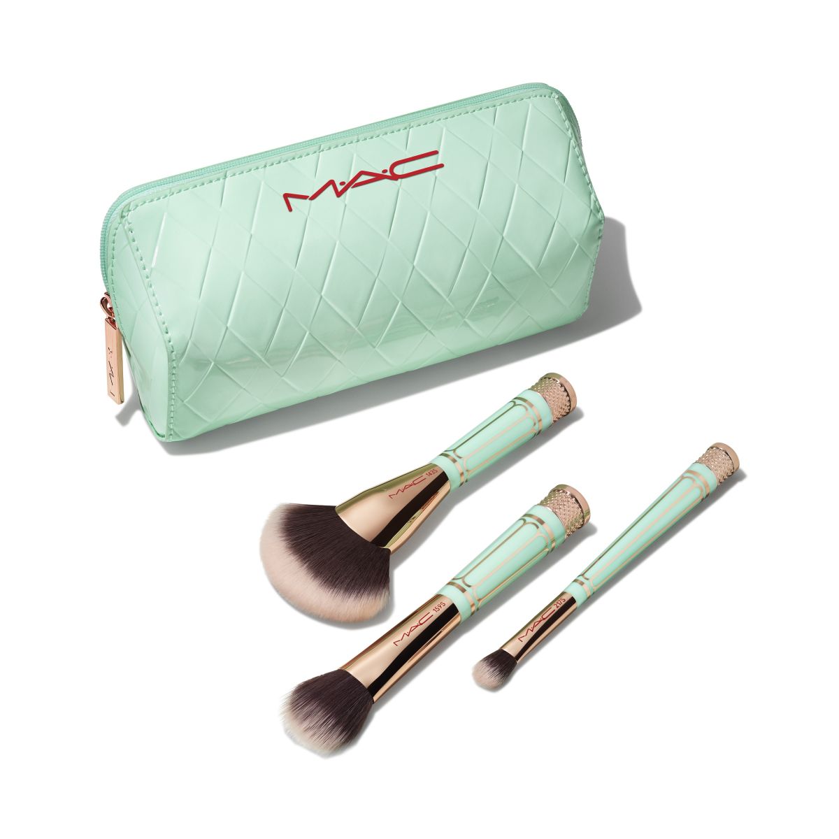 毎年好評のブラシセット(1万2100円)は今年も登場する。フルサイズのブラシ3本とミントカラーのキルティングポーチをセットにした。