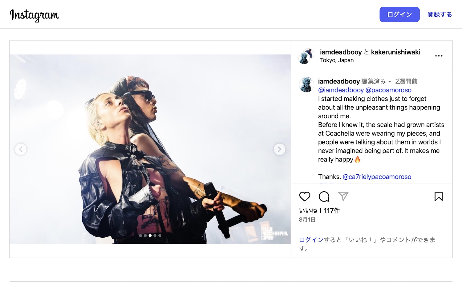 パコ:あれは本当にアイコニックだから僕も好きだよ。あとは、ついこの間の「ロラパルーザ ベルリン(Lollapalooza Berlin)」の服もお気に入りだね。