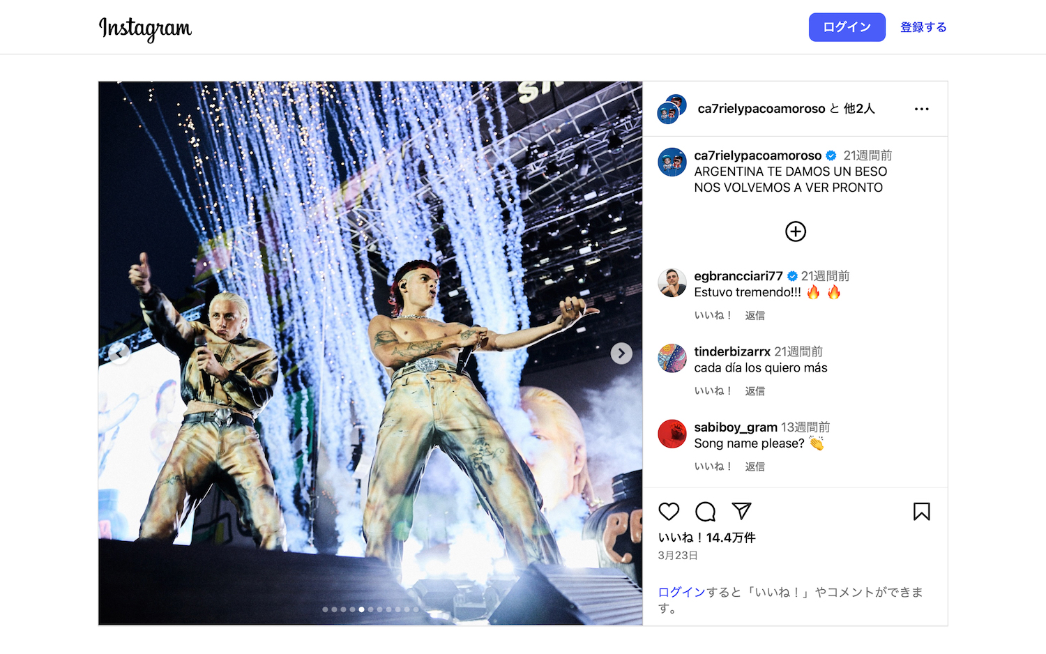 音楽愛好家の間では、常にチェックすべきYouTubeコンテンツとして知られるアメリカの公共ラジオNPRの人気企画「タイニー デスク コンサート(Tiny Desk Concert)」。企画名通り、NPRの実際のオフィスの一部を舞台にアーティストたちがパフォーマンスを披露し、約16年の歴史の中で1300本以上の映像が投稿されてきた。その中で昨年10月、映像が公開されるや否や同企画史上最速スピードで再生され、わずか数日で1000万回再生を突破したアーティストがいるーーアルゼンチン発のアーティストデュオ、カトリエル&パコ・アモロソ(CA7RIEL & PACO AMOROSO)だ。