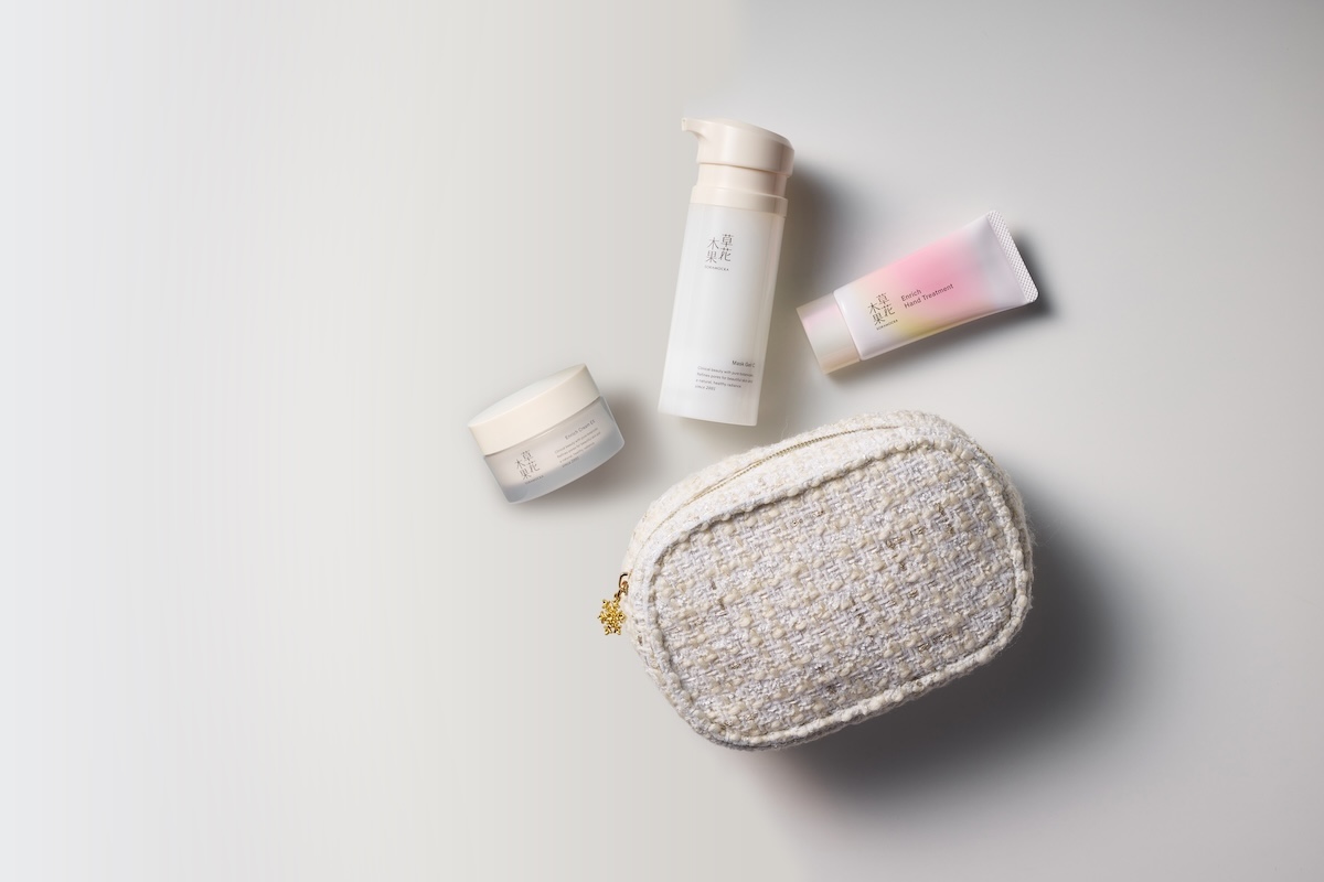 キナリの「草花木果」は11月4日、人気の美容液“マスクジェル C”を中心に、落とすから潤すケアまで毛穴・ハリケアのクリスマスコレクション2種を発売する。どちらのセットにも手肌に潤いを与える“エンリッチ ハンドトリートメント”(30g)とオリジナルポーチが付属する。公式オンラインサイトおよび楽天市場店で取り扱う。