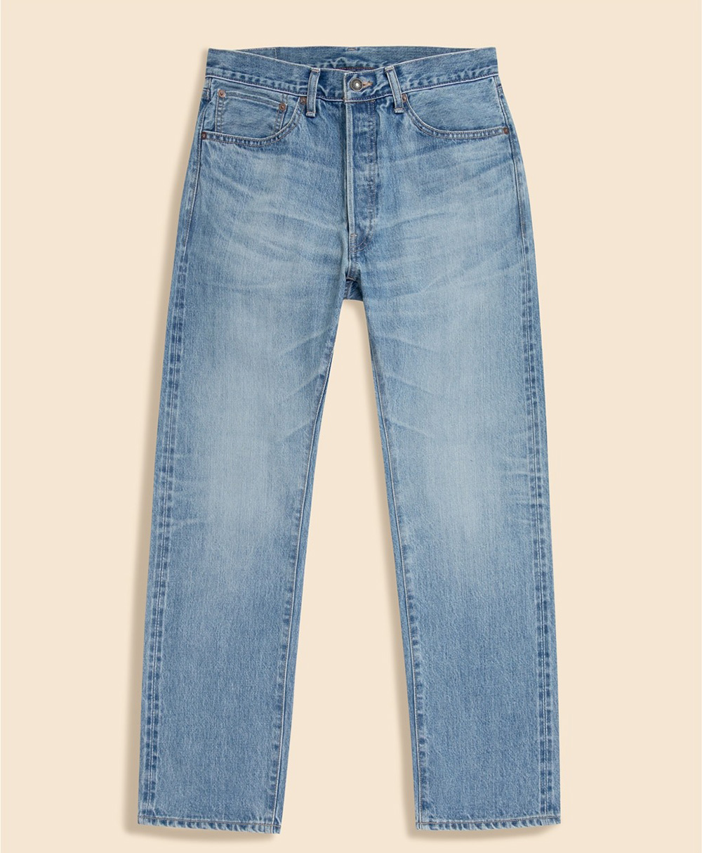 主力の定番ジーンズは1987年に開発した日本製セルビッジと、革パッチや紙パッチなどの装飾を排除したミニマルでシンプルなデザイン。定番シルエットに加えて、トレンドに対応したワイドシルエットがヒット。カラーは同ブランドらしいリジッドデニムカラー。「2025年1〜6月は前年同期比で51%増と好調に推移。ユーチューブ(YouTube)やSNSなどを活用して、若年層へのリーチを強化&開拓できた」(石井拓史・企画生産課課長)。