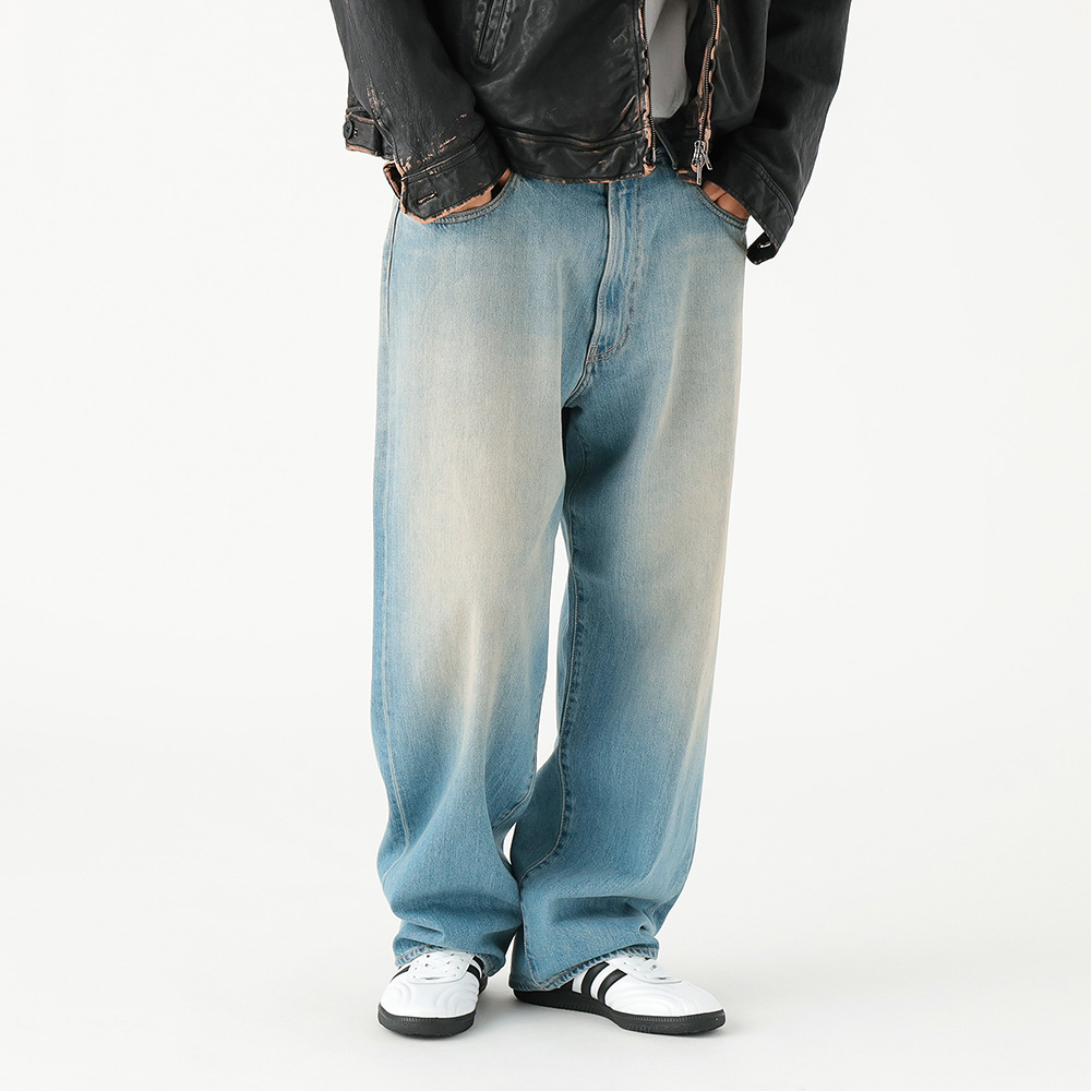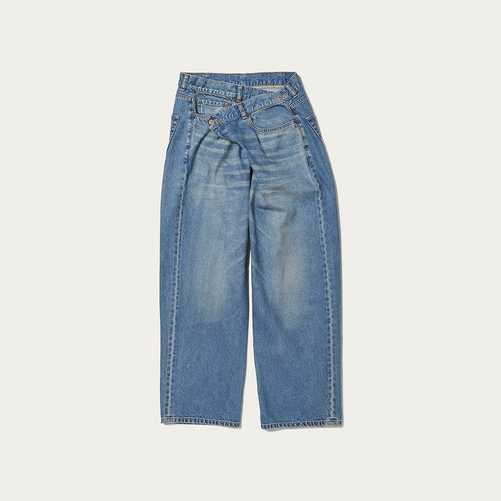 2024年春夏&秋冬からラップワイドデニム(写真)やウエストボタンのタックタイプ、ローライズ、ミドル、ハイライズなど、ディテール&バリエーションに富んだジーンズを提案。従来より高額な2万円台のアイテムも売れるように。25年春夏はピグメントやケミカルウォッシュなどの加工物が好調。25年春夏の販売実績は23年秋冬比で2.7倍に。25年をピークと見つつ、25年秋冬〜26年はストライプ抜染などデザインに一捻り二捻りいれたものを提案する。