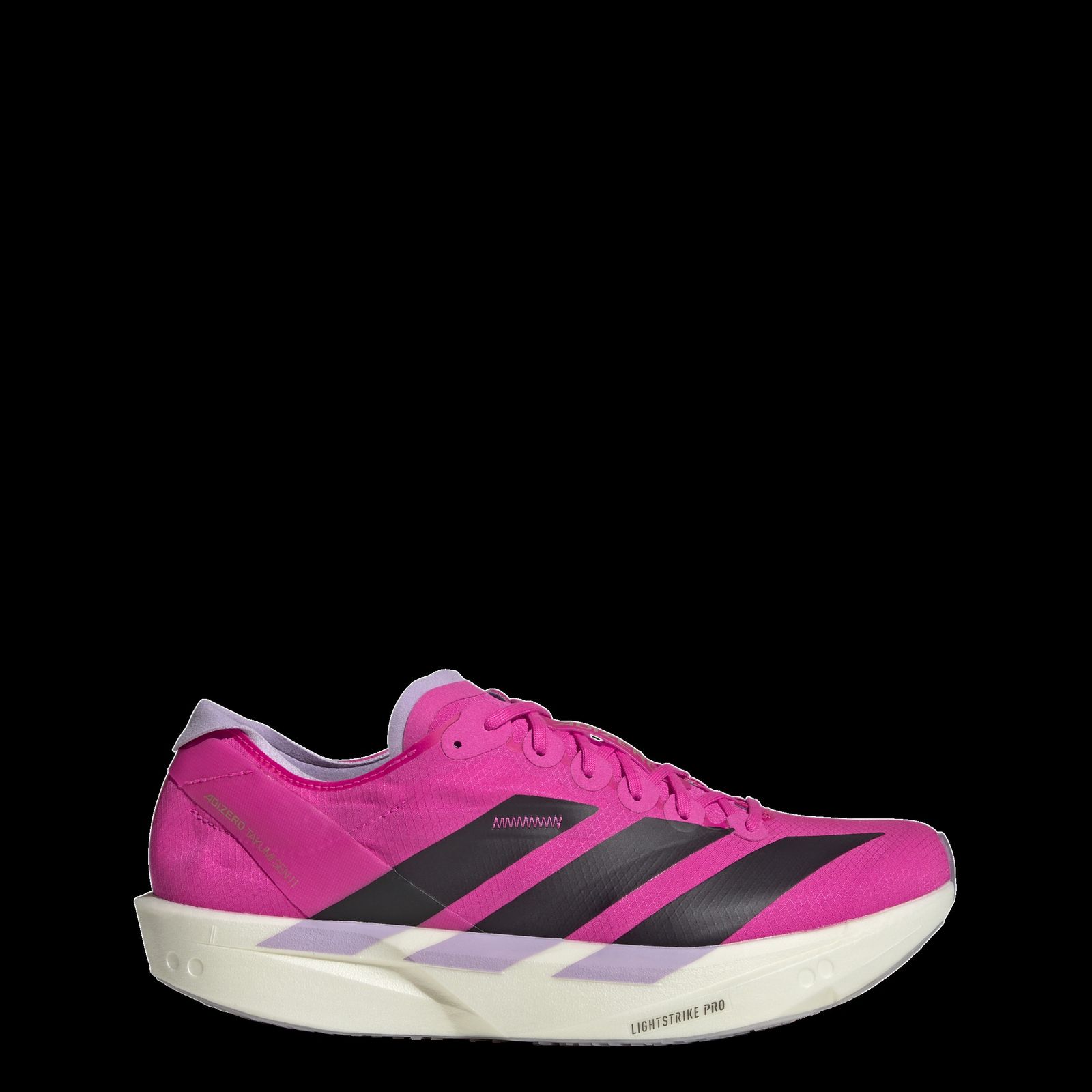 2025年秋冬コレクションの新色は、ショッキングピンク。“アディゼロ”全5モデルに採用する。長距離レース用シューズ“アディオス プロ 4”と薄底レース用シューズ “ジャパン 9”は、ボディー全体をピンクで包み、ブランドのシンボル“スリーストライプス”をシルバーメタリックであしらった。駅伝、ロードレース向けのレーシングシューズ “タクミ セン 11”は、ブラックの3本線でピンクを引き締めた。その他、高機能モデル“ボストン 13”と、ランナー向け“エスエル 2”も展開する。