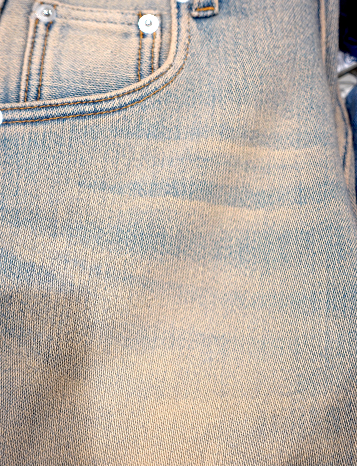 ワイズデコ製デニム生地の真骨頂は、浅野撚糸の「スーパーゼロ」の技術を使った「スーパーゼロデニム」だ。浅野撚糸の特殊な撚糸技術の集大成である「スーパーゼロ」は、糸自体が膨らみを持ち、テキスタイルにした際に軽く柔らかく仕上がる特徴がある。そのエッセンスをそのままデニムに持ち込み、世界中のジーンズマニアたちをうならせるデニム生地に仕上げている。