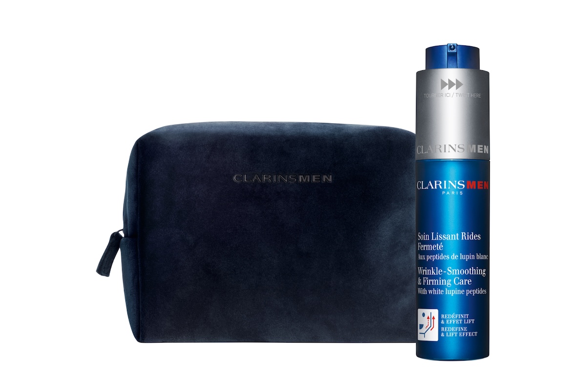 メンズ向けの“クラランス メン セット”(1万120円)には、シトラスの香りでシャープな若々しい肌に導く顔・首用エイジングケア乳液、“フェルムテ フリュイド”の現品(50mL)とオリジナルポーチをセットにした。
