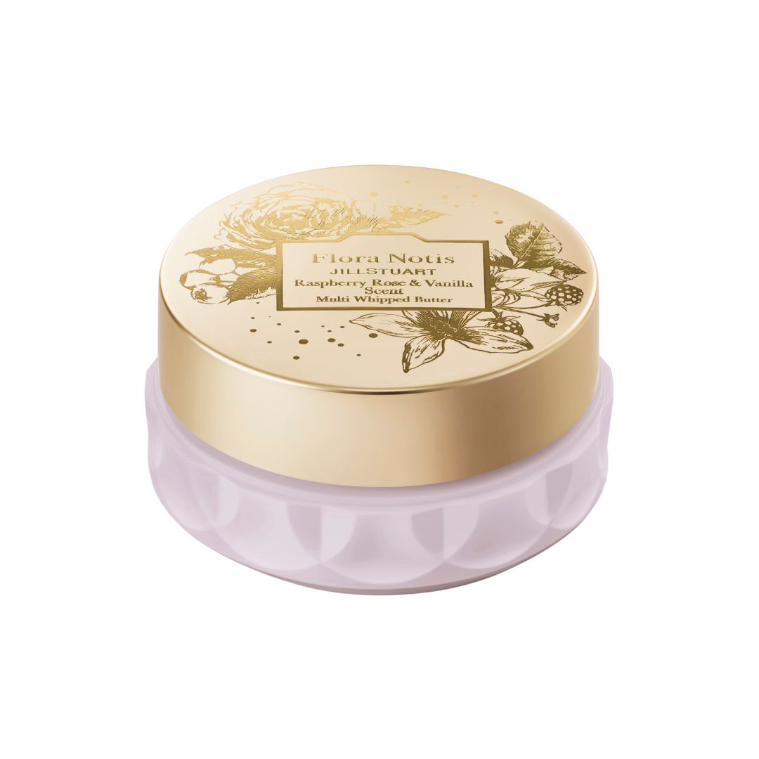自然の恵みをたっぷりと凝縮したバターで全身を潤いで満たし、心を解きほぐす“ラズベリーローズ&バニラ マルチホイップバター”(限定、4180円)は、顔や体、髪など全身に使えるマルチな保湿クリーム。花蜜のような使用感とホリデー限定の香り、ウィンターパーティーを想起させるデザインと蓋の箔押しがスペシャルなナイトケアタイムに導く。
