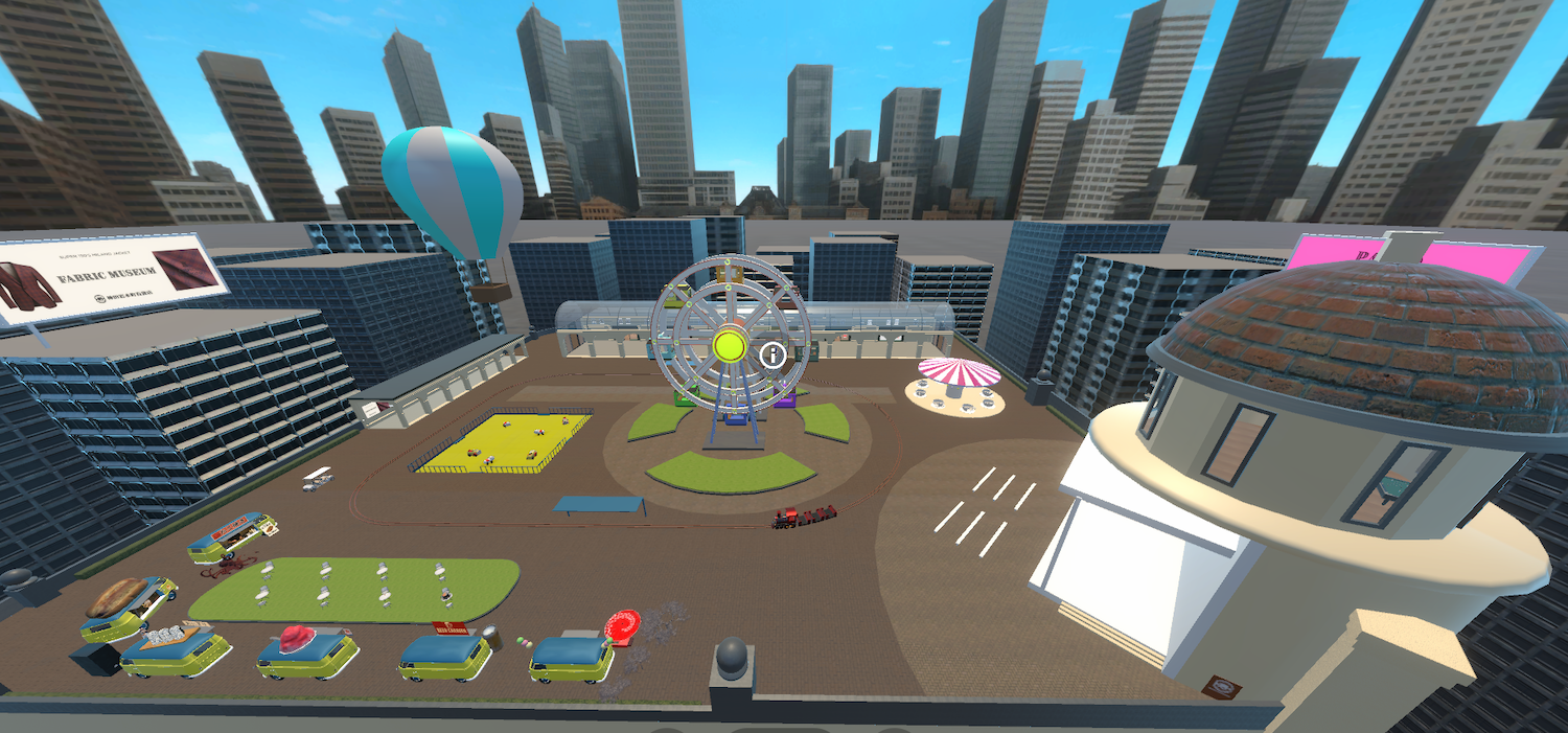サイト名の「神田岩本町」は東京の輸入服地卸やオーダーシャツなどがかつて多く集まっていた場所で、メタバースも屋上遊園地風の昭和を感じる空間に仕上げている。