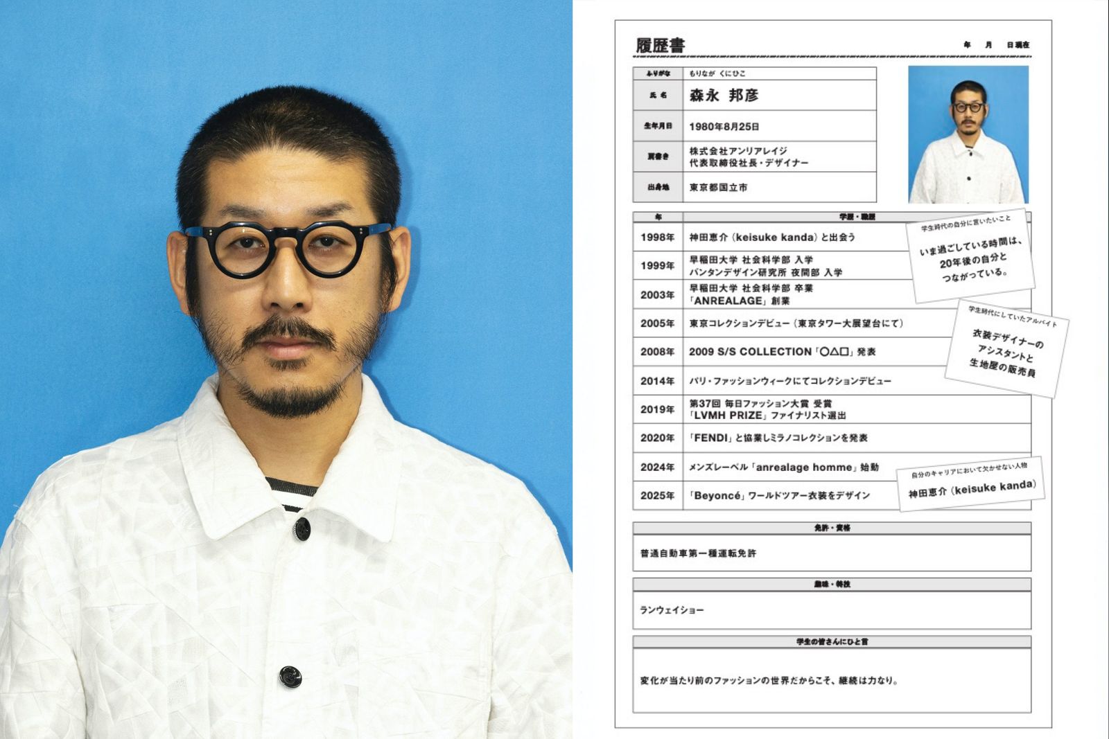 本企画では学生が悩む“キャリア”にフォーカス。毎回ゲストとして招いたファッション&ビューティ業界の先輩方には事前に履歴書を記入してもらい、学生たちがインタビュアーとしてゲストに質問する“囲み取材”を実施。Vol.2の今回は、森永邦彦アンリアレイジ代表取締役社長兼「アンリアレイジ(ANREALAGE)」デザイナーが登壇した。