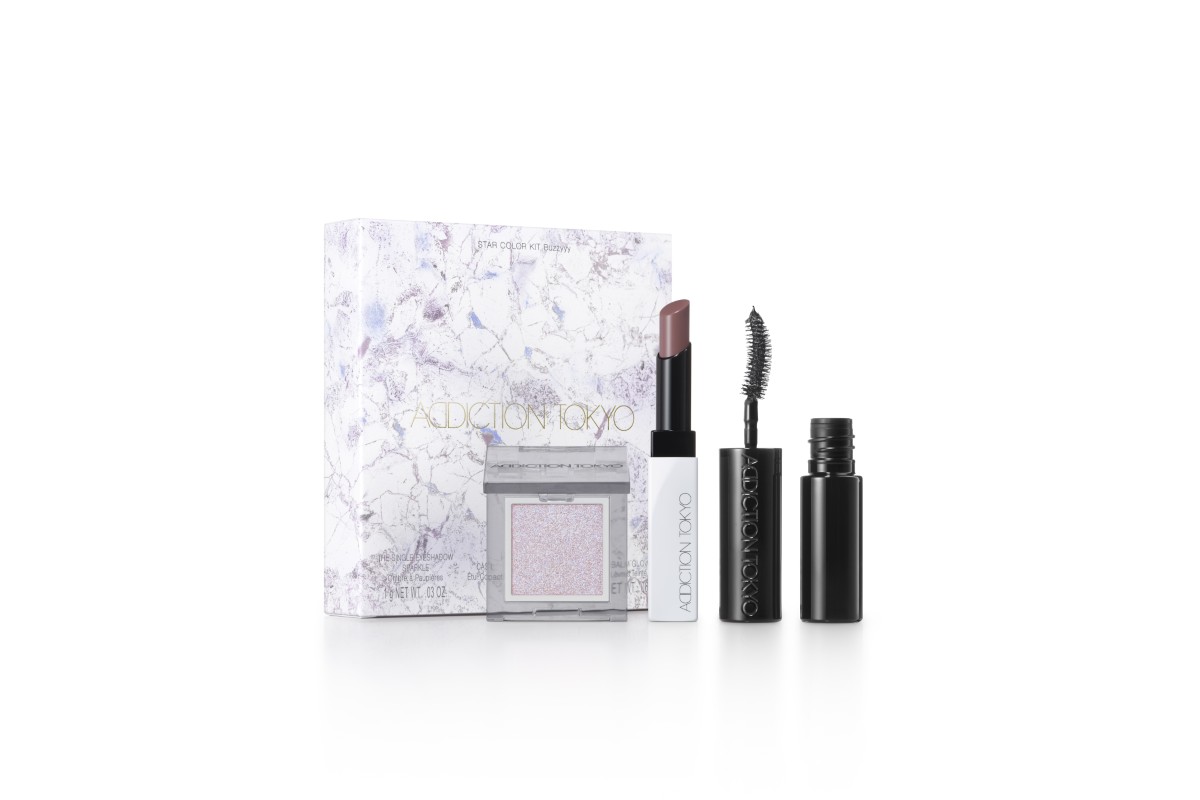 “スター カラー キット バジー”は、星空のように輝くクリアパープルのスパークルカラー“ザ シングル アイシャドウ 003SP バジー”に、モーヴパープルのティントリップバーム“ザ リップバーム グロウティント 004 ピクチャー ユー”を合わせた。さらに、ミニサイズの“ザ マスカラ インテンス ラッシュ 004 ウルトラ ブラック”が、まつ毛を繊細にセパレートしながらボリュームをプラスする。