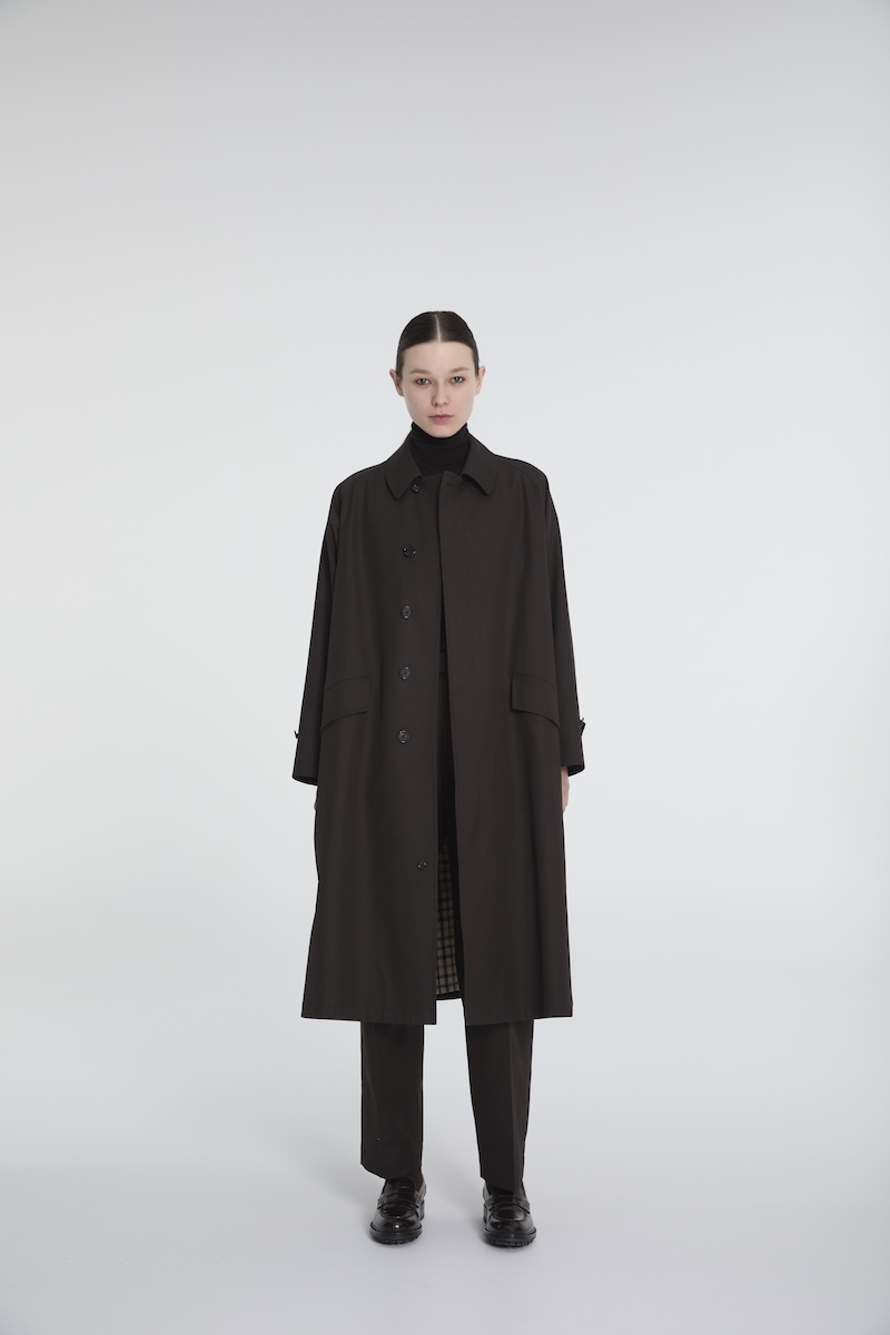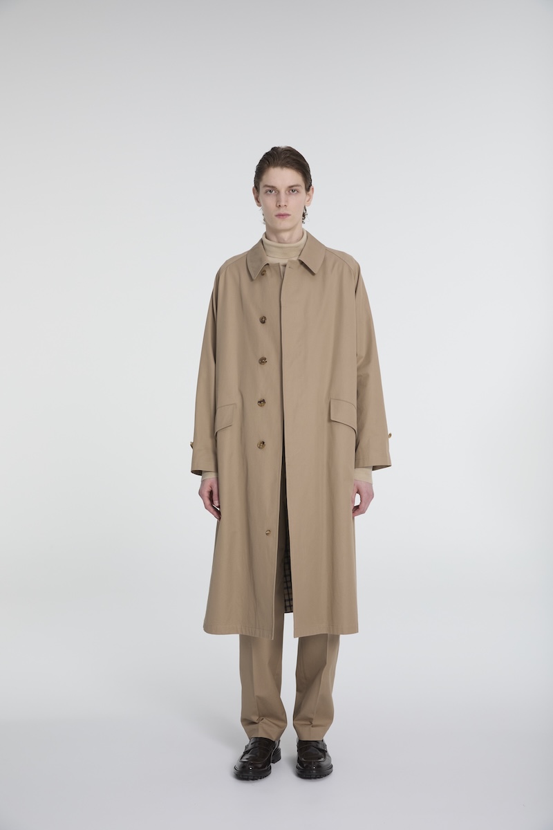 「ダックス」の代表的な“ハウスチェック”柄を裏地にあしらったロングコートは、襟元のボリュームやクラシックなディテールが引き立つ英国起源のバルマカーンコートと、伝統的なディテールにゆったりとしたモダンなシルエットを融合させたトレンチコートを用意。ラグランスリーブが動きやすさと自然なドレープ感を生み出し、レイヤードしやすく、カジュアルからフォーマルまで幅広く着用できるデザインに仕上げた。