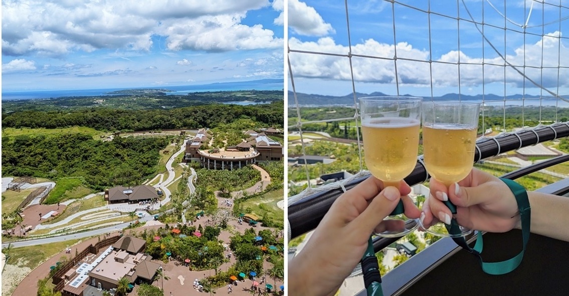 一方、「ホライゾン バルーン」は直径約23mの気球に乗り込み、地上200m地点から360℃のパノラマを楽しめる気球体験。上空からは今帰仁村の古宇利島や伊平屋島、伊是名島が見渡せるほか、別料金でスパークリングワインを楽しめるサービスもある。