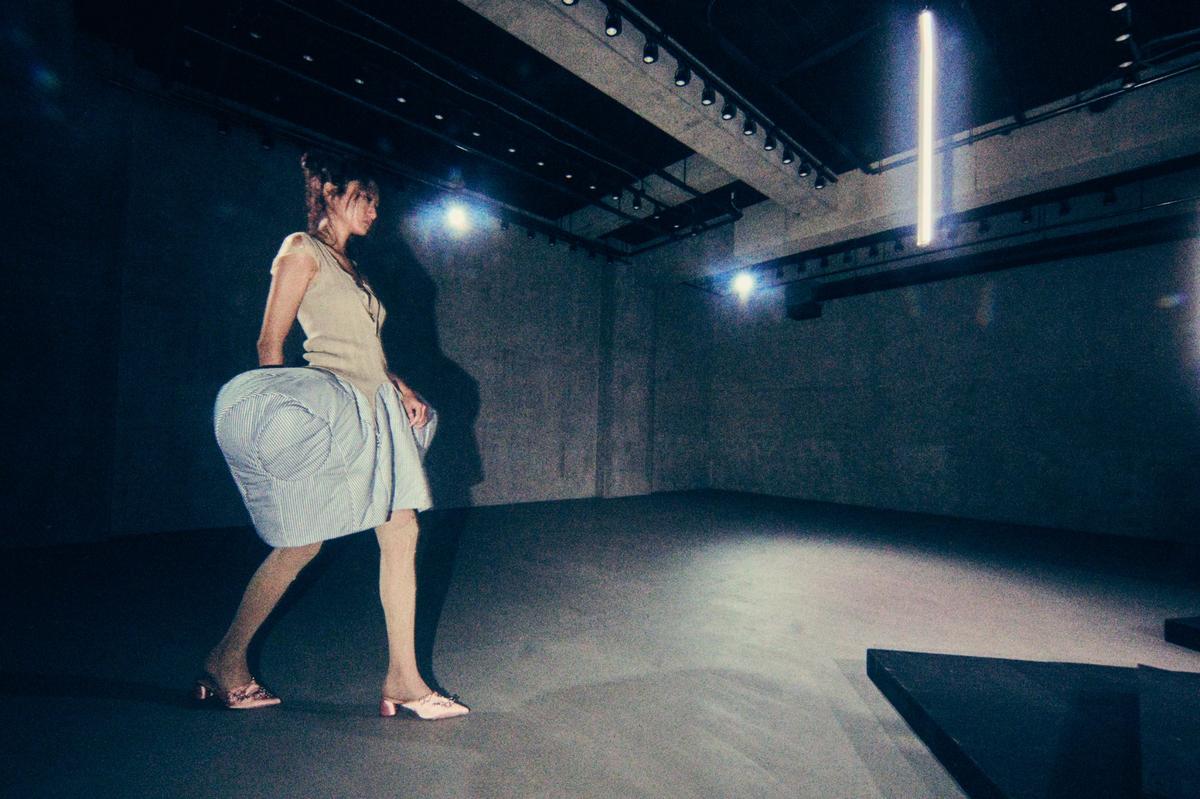 2026年春夏コレクションのショーは小さな会場で、一ルックずつを小さな舞台に上げてスポットライトを当て、前後左右を360度から丁寧に見せる演出を選択。バレエダンサーたちの可憐さの奥にある強さや身体性、踊りの後の余韻など目に見えないをも浮かび上がらせた。