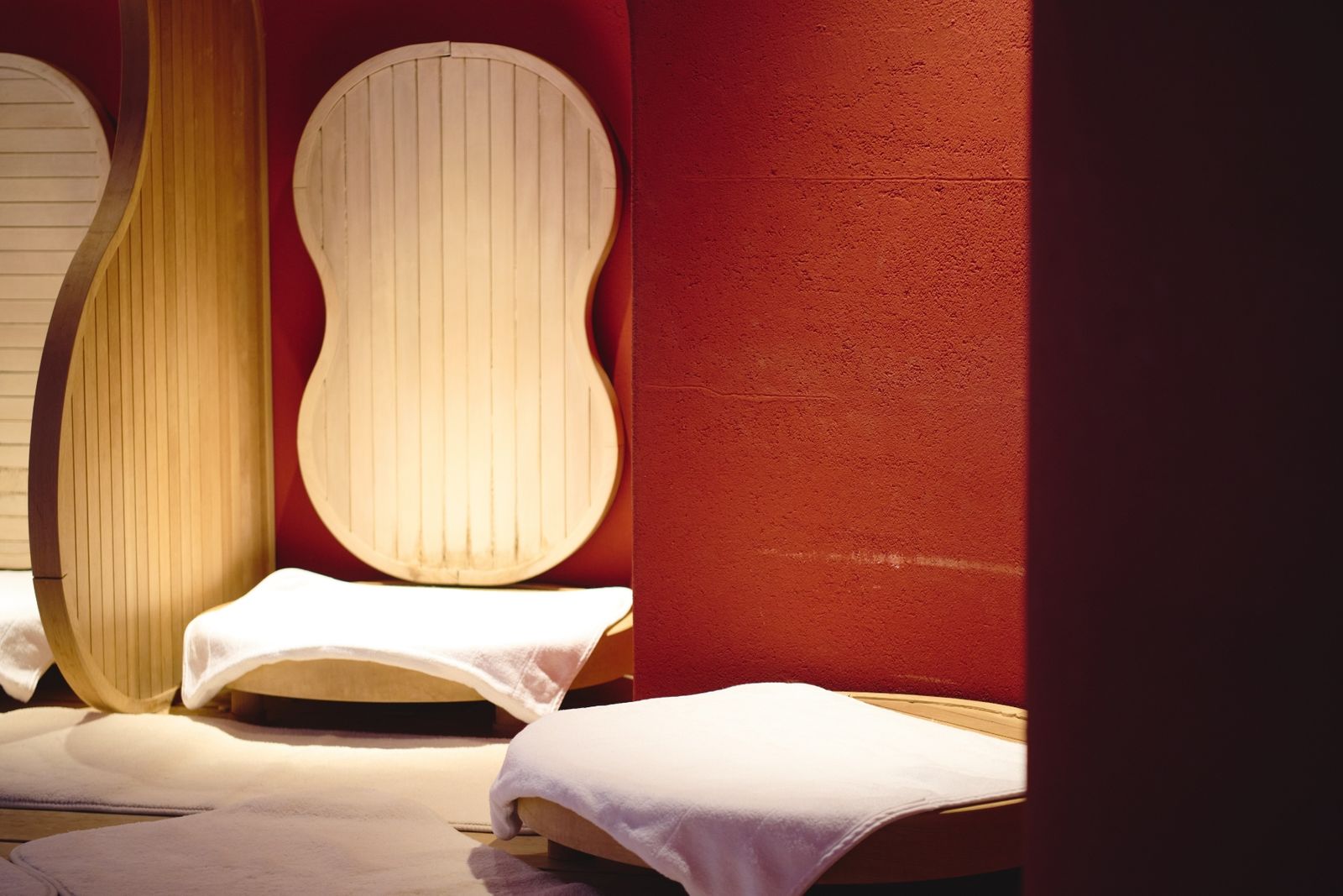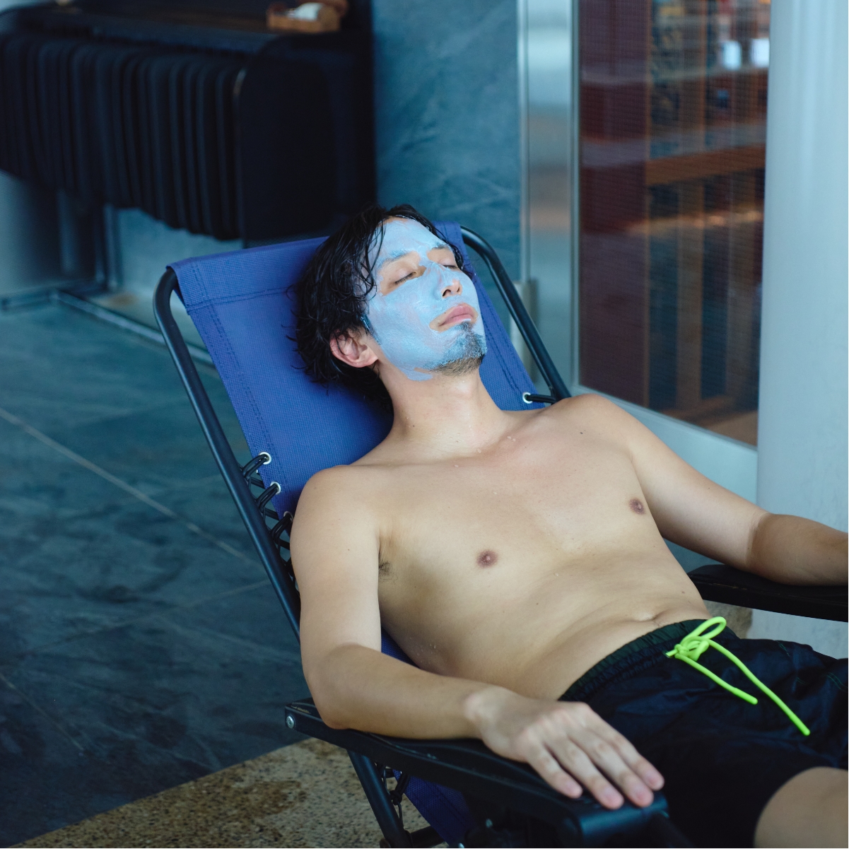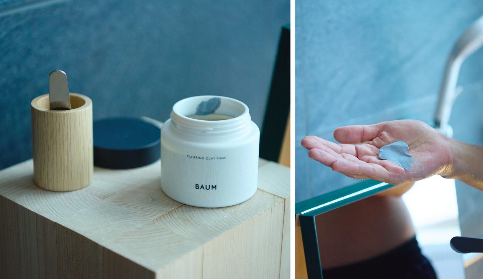 「CLAY」と名付けられた外気浴スペースでは「バウム」の“クリアリング クレイマスク”でひと休憩。樹木の恵みが香るクレイマスクは、心地よい呼吸を促し、みずみずしいクリアな肌へ導く。タオルドライした後は、さらにリラクゼーション効果を高めるべく5番目のリチュアル「CAVE」へ。男女フロアでぞれぞれサウナの仕様は異なるが、ガイドによりゆったりとした呼吸に意識を向けることや、人は自然の中の一部であることなどがストーリー仕立てで語られていく。