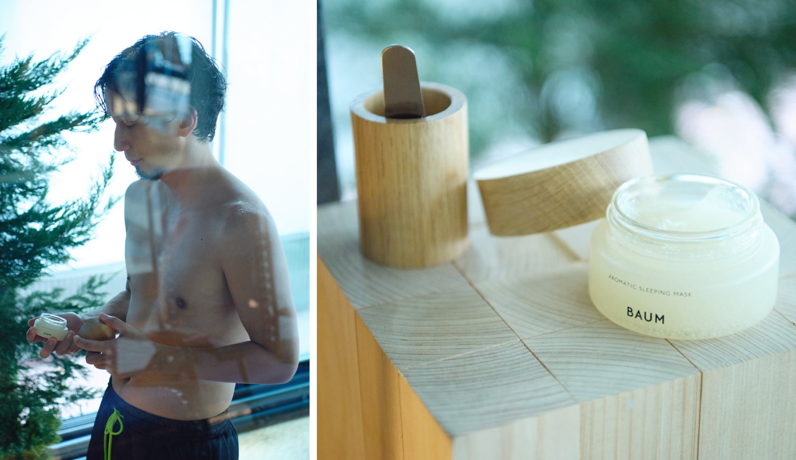 深部まで体が温まったところで、“アロマティック スリーピングマスク”で肌をクールダウン。ゲストたちは樹木の香りを感じながら、ふっくらとした艶やかな肌を体感した。サウナ、水風呂、休憩という一連の流れを“リチュアル”として体験設計することで、自然の香りに癒やされながら森と一体化したかのような特別なひとときを提供した。