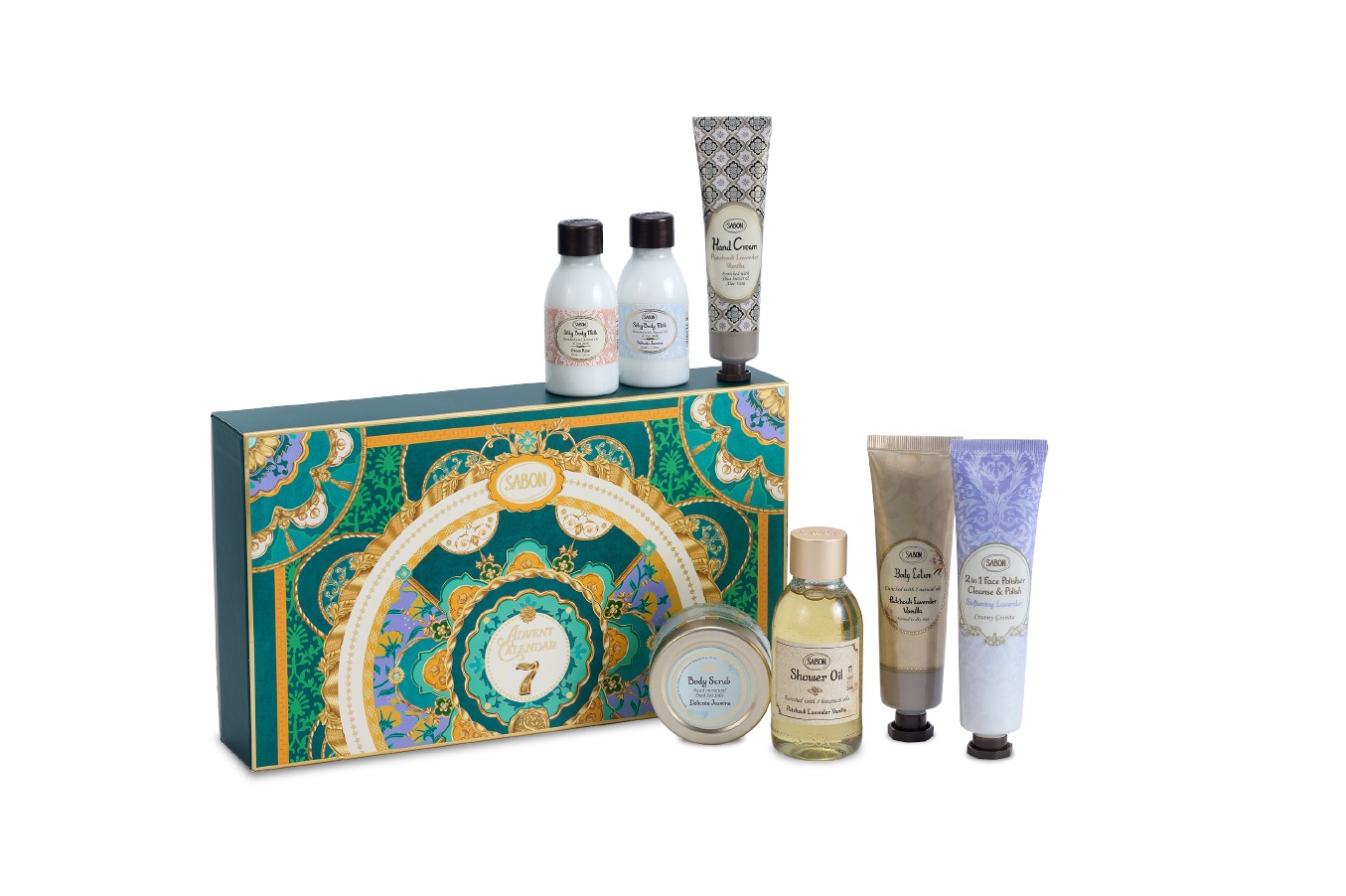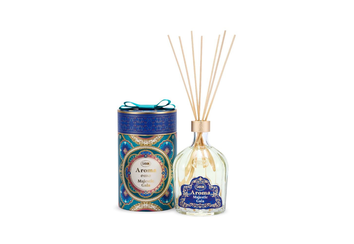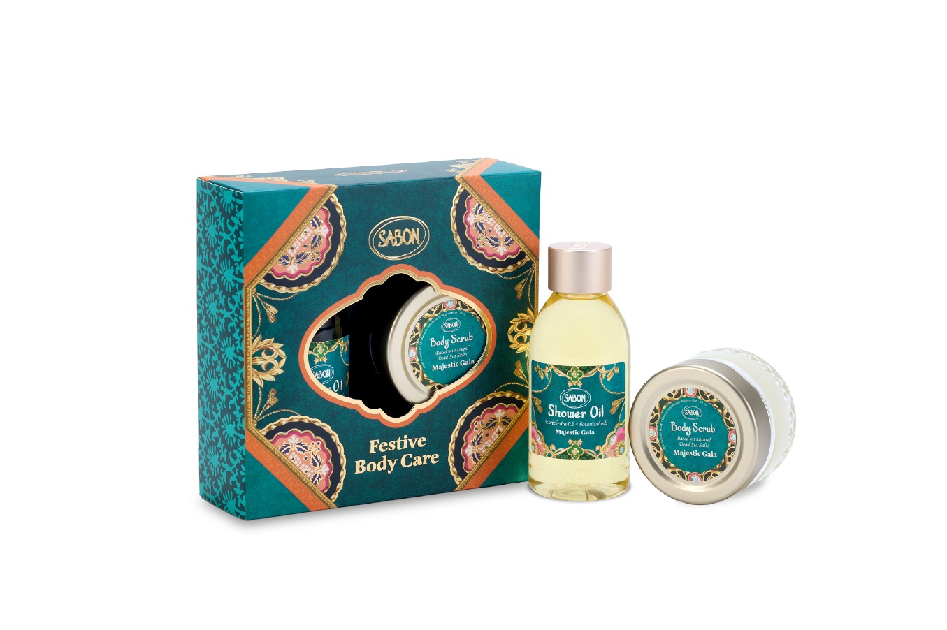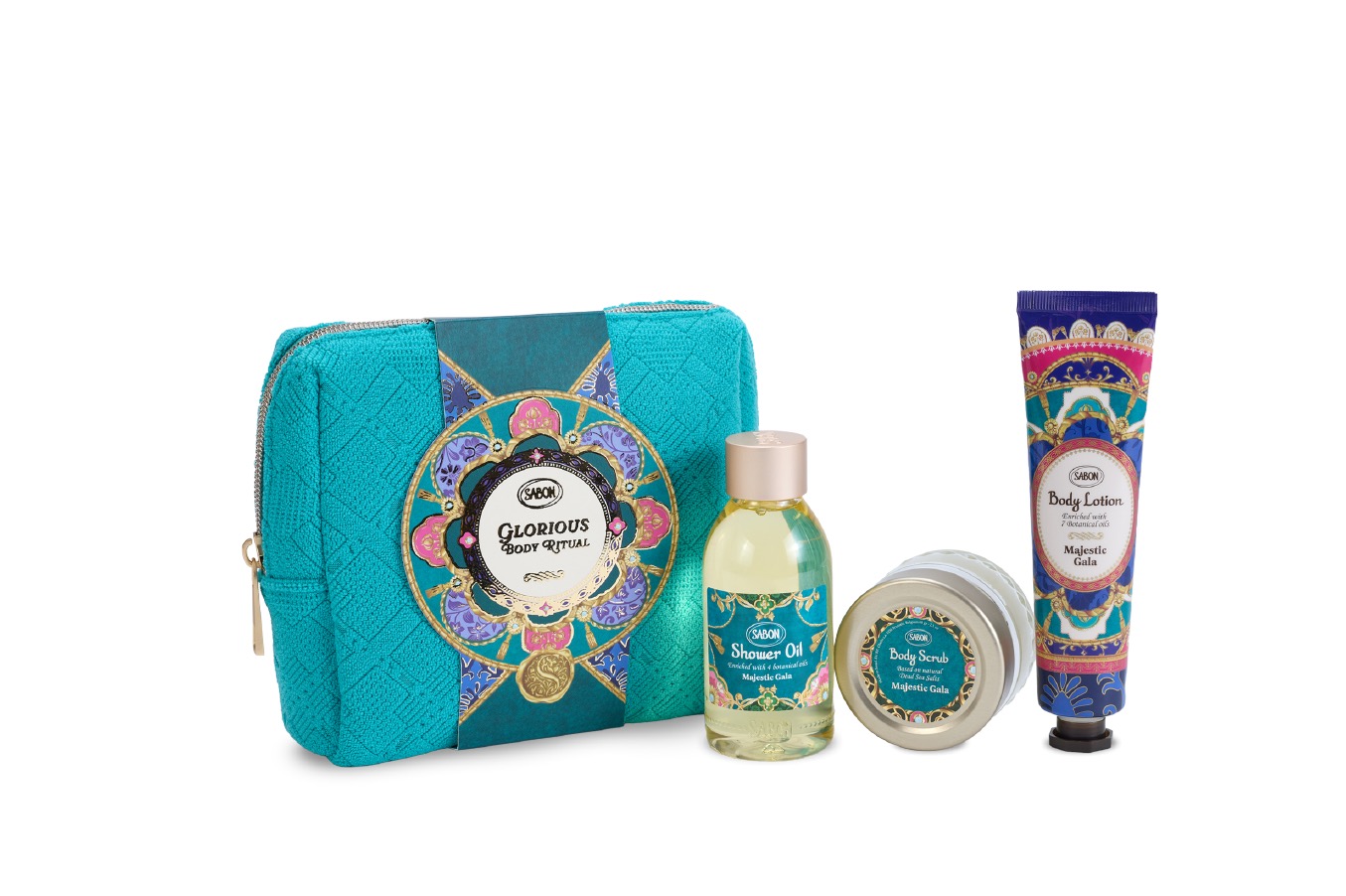 「サボン」公式オンラインストア、LINEギフト、アットコスメ(@COSME)限定発売では、シャワーオイル(300mL)とスクラブ(320g)、ローション(150mL)が入った“ボディーケアキット マジェスティック・ガラ”(1万2100円)を用意。「サボン」直営店限定品は、シャワーオイル(450mL)、スクラブ(320g)、バスボールが入った“ボディーケアキット マジェスティック・ガラ”(1万1000円)と、ボディーケアアイテムをファブリックポーチにセットした“ロイヤルギフト マジェスティック・ガラ”(4950円)だ。