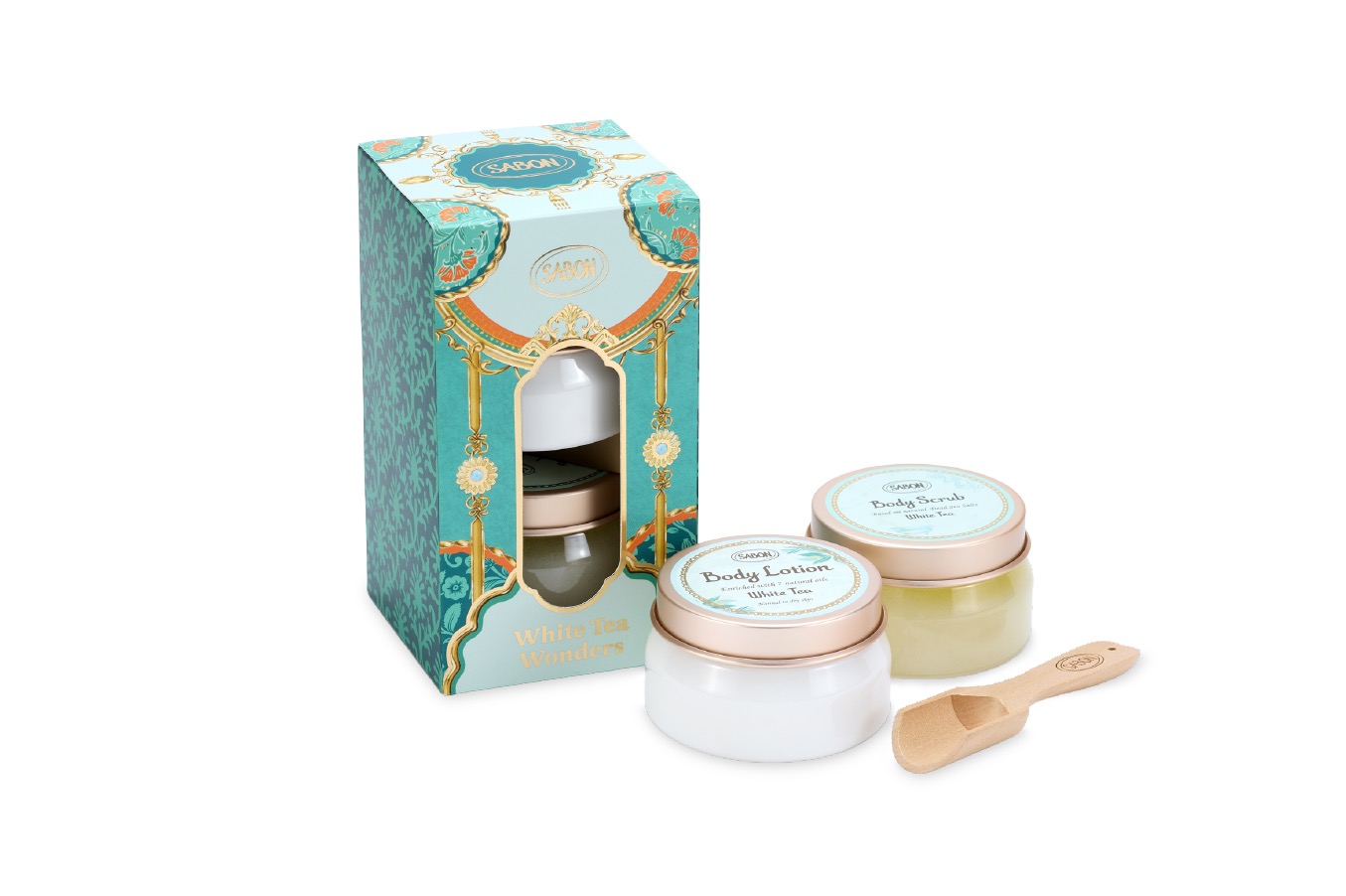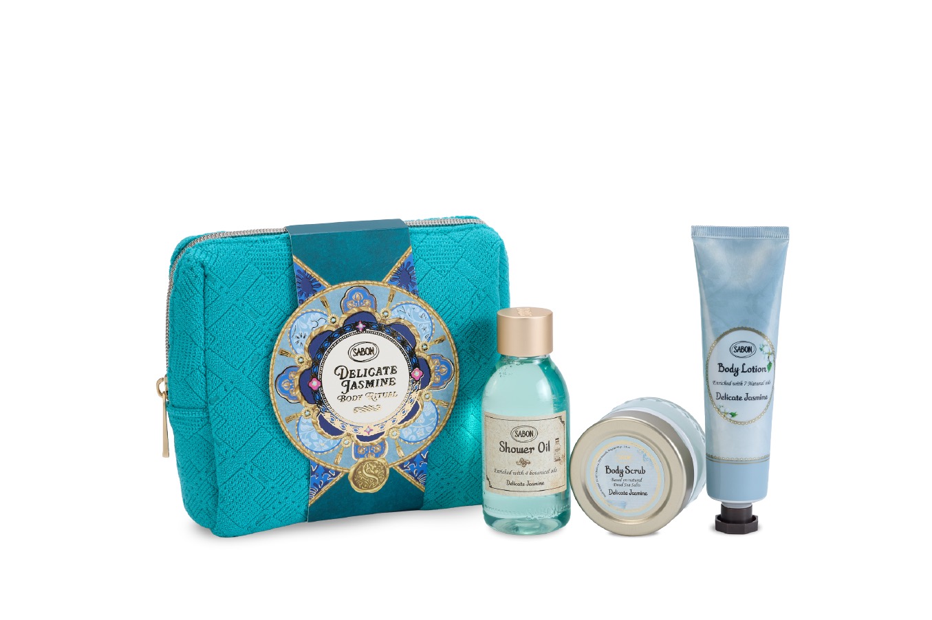 みずみずしいグリーン・ローズ、優しいホワイトティーの2種の香りで、それぞれスクラブ(200g)とローション(140mL)が入った“ボディーケア デュオ”(全2種、各5940円)に加え、パチュリやラベンダーをブレンドしたエキゾチックな香りをまとう“モイスチャーギフト”(3850円)や、ボディーケア3種をファブリックポーチにセットした“ロイヤルギフト デリケート・ジャスミン”(4950円)をラインアップする。