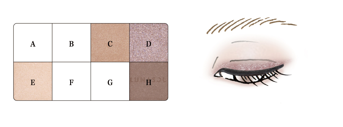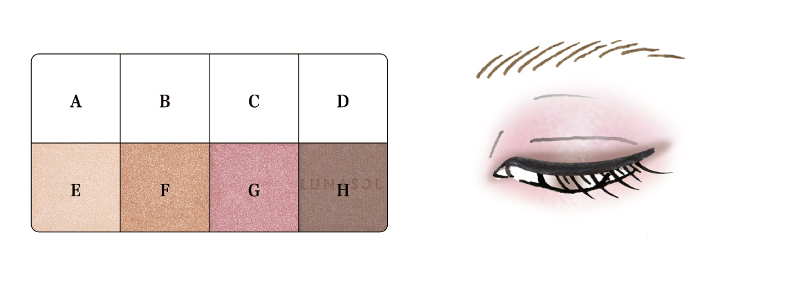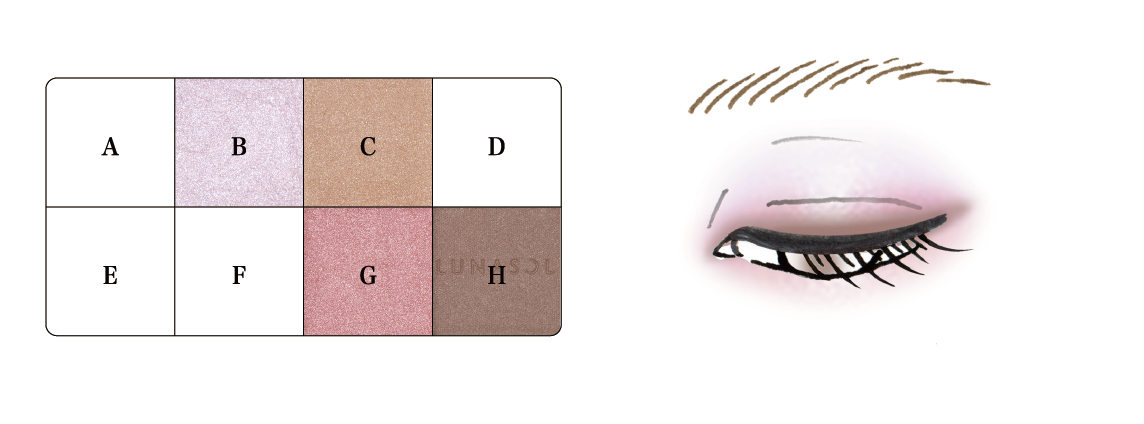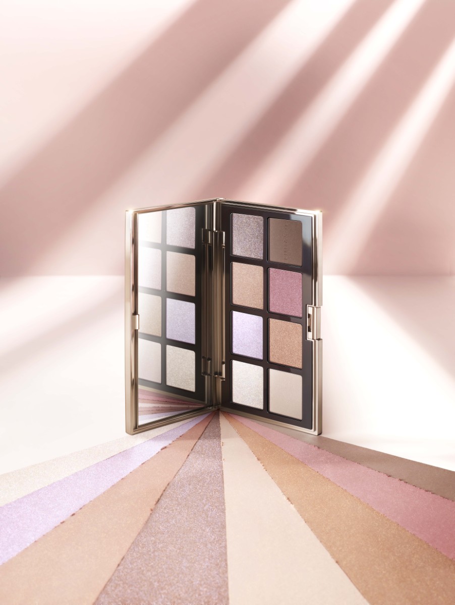 同アイテムは、ベージュが咲き誇るようなウォームトーンに、まばゆい輝きを散りばめた8色のアイシャドウパレット。透明感のある高輝度パールを敷き詰めたようなピンクニュアンスのホワイト、さまざまな色のパールに色が揺らめく光のニュアンスを添えたラベンダー、陰影が肌になじむソフトマットなレディッシュベージュ、高輝度ホワイトやブルーでメタリックに彩る赤みグレイッシュブラウン、繊細な艶で目元を明るく整えるピンクベージュ、メタリックな光沢を軽やかに透けるような質感で表現した艶やかなオレンジベージュ、濡れたような色艶のある華やかなローズベージュ、透け感のあるベージュブラウンだ。質感やニュアンスの異なる個性豊かな色が多彩な表情を引き出しながら、多幸感あふれるムードを演出する。