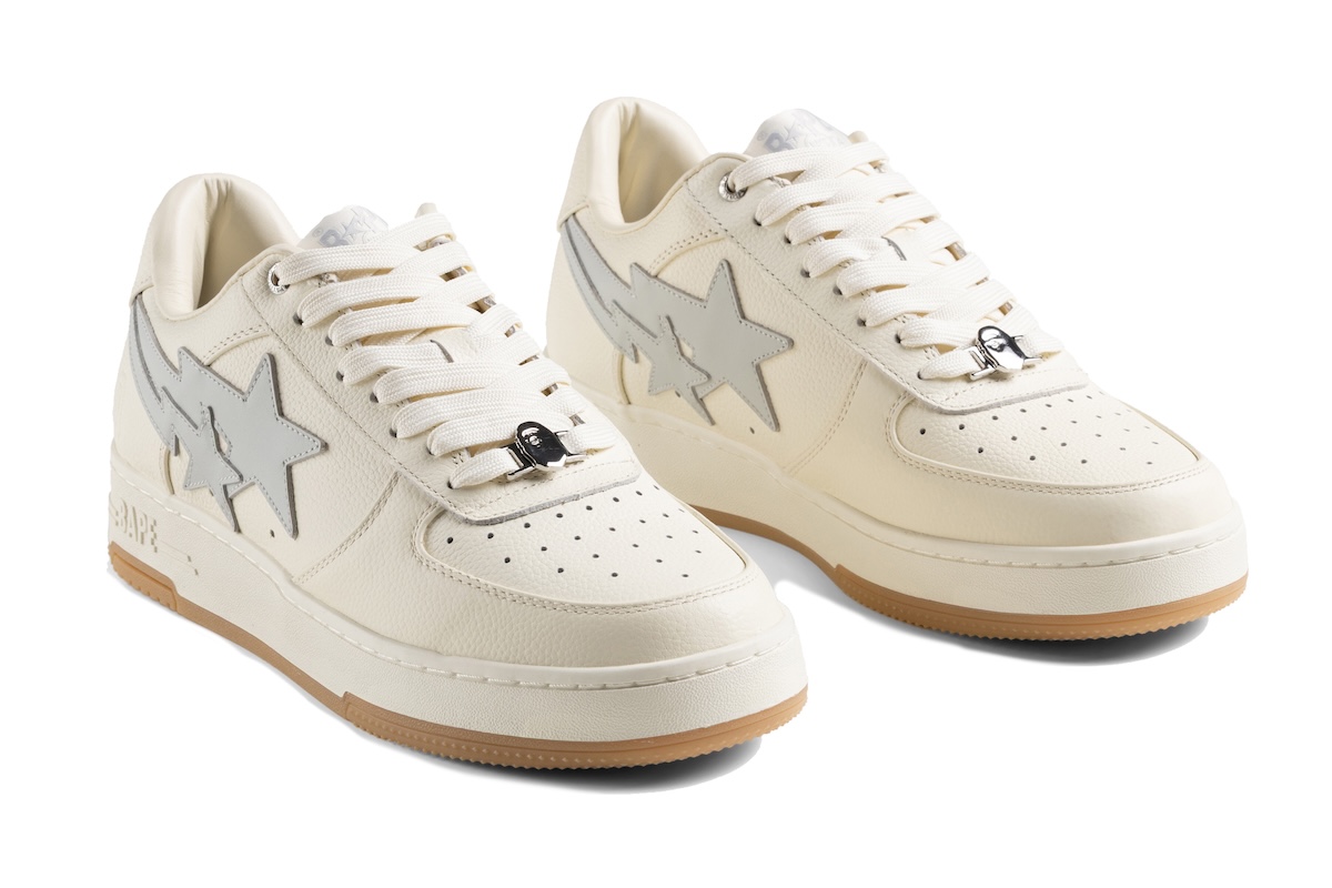 本コレクションは、“リヴィジテッド・クラシックス(再解釈された定番)”をテーマに、ニューヨークのエッセンスを取り入れた3型がラインアップする。コラボアイテムは、チェーンステッチやパッチワーク、手書き風フォント、カレッジスタイルのバックロゴなど、「ベイプ®︎」らしいディティールを散りばめたバーシティージャケット、(13万2000円)、「ベイプ®︎」と「ハイスノバイエティ」両者の要素を融合させた特別なグラフィックデザインをあしらったTシャツ(1万4300円)、「ハイスノバイエティ」の20周年を記念してヒール部分に“20”のナンバリングをあしらい、アイボリーレザーで仕上げた“BAPE STA™”(3万6300円)がそろう。また、コレクション全体を通して使用しているカモ柄は、今回のコラボレーションのためだけに制作した「ハイスノバイエティ」限定カラーパターンとなっている。