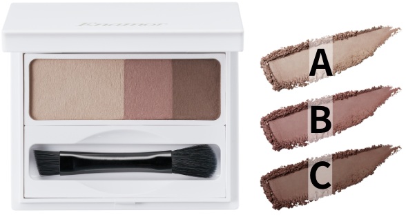 カラーは全2色。“ナチュラルブラウン”は、深すぎず明るすぎない絶妙なバランスで、どんな場面にもなじむ王道ブラウン。眉色をほんのりトーンアップさせ、上品で柔らかな印象へ導く。パレットには、眉頭やラインを整えるのに最適なナチュラルベージュ、眉全体をトーンアップするウォームブラウン、眉尻の描き足しやグラデーションの引き締めに使えるチョコレートブラウンの3色をセットした。“ピンクブラウン”は、顔全体にほんのり血色感を宿すロージーブラウン。肌なじみの良い大人のローズピンクが、自眉の黒さを和らげつつ表情を明るく見せ、さりげなくこなれた雰囲気を演出する。パレットには、暗髪にも合わせやすい血色ピンクベージュ、眉全体のトーンアップと立体感を引き出すロージーブラウン、そして儚げなニュアンスを加えるココアブラウンの3色を組み合わせた。