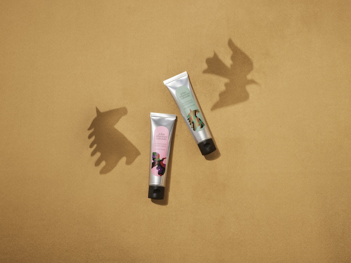 “モイストブルーム ハンドクリーム”(限定、全2種、各30g、各2530円)は、「ジョンマスターオーガニック」を代表するアルガンオイルに加えて、マルラオイルや伸びの良さが特徴のアーモンド油を配合し、手指にしっとりと潤いを与える。また、ローズふイップエキスなどの植物エキスがキメを整え明るい印象へ導く。2種類ともホリデー限定の香りで用意する。