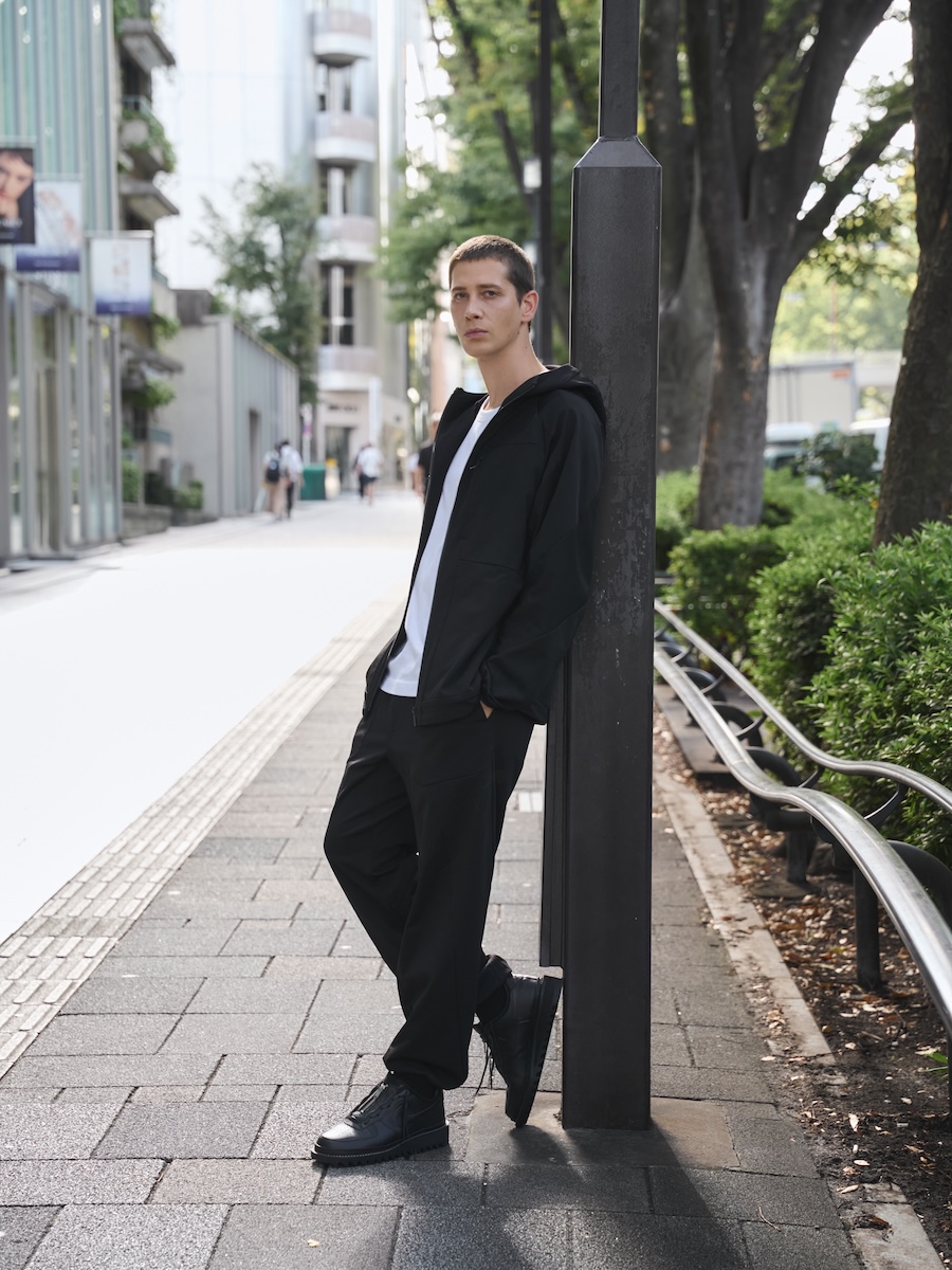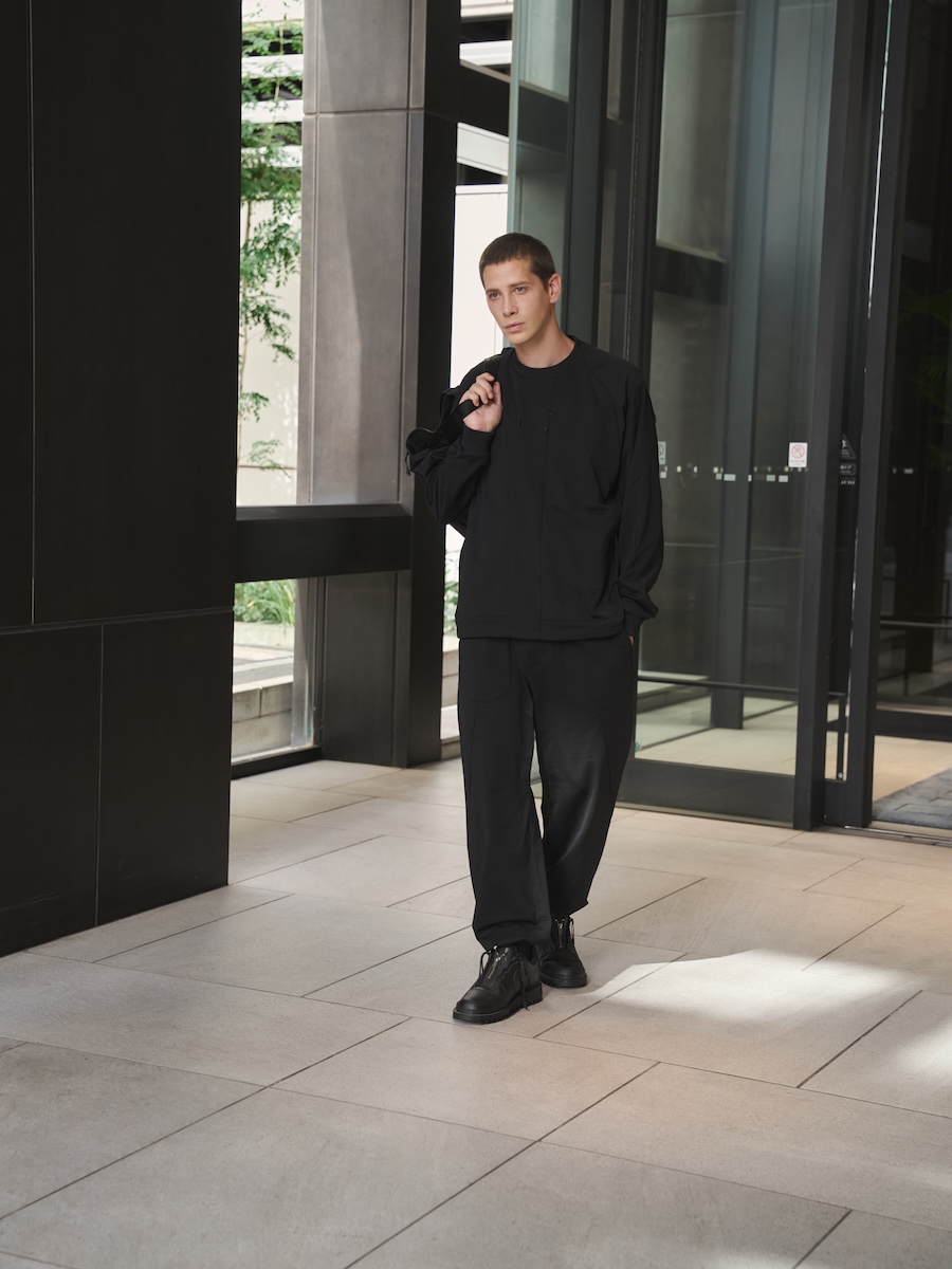 アイテムは、ザ トウキョウの「ホワイトマウンテニアリング」別注で初の裏毛素材を取り入れ、ブランド特有のパターンを生かせるようにソフトシェルと裏毛の中間のような生地を採用した。ラインアップは、胸と腰にポケットを配し、伸縮性と軽はっ水性のある素材を用いたシャツ(5万600円)や、切り替え部分にスラッシュポケットを備えたパーカ(5万5000円)とスエット(4万4000円)、パンツ(4万4000円)をそろえる。