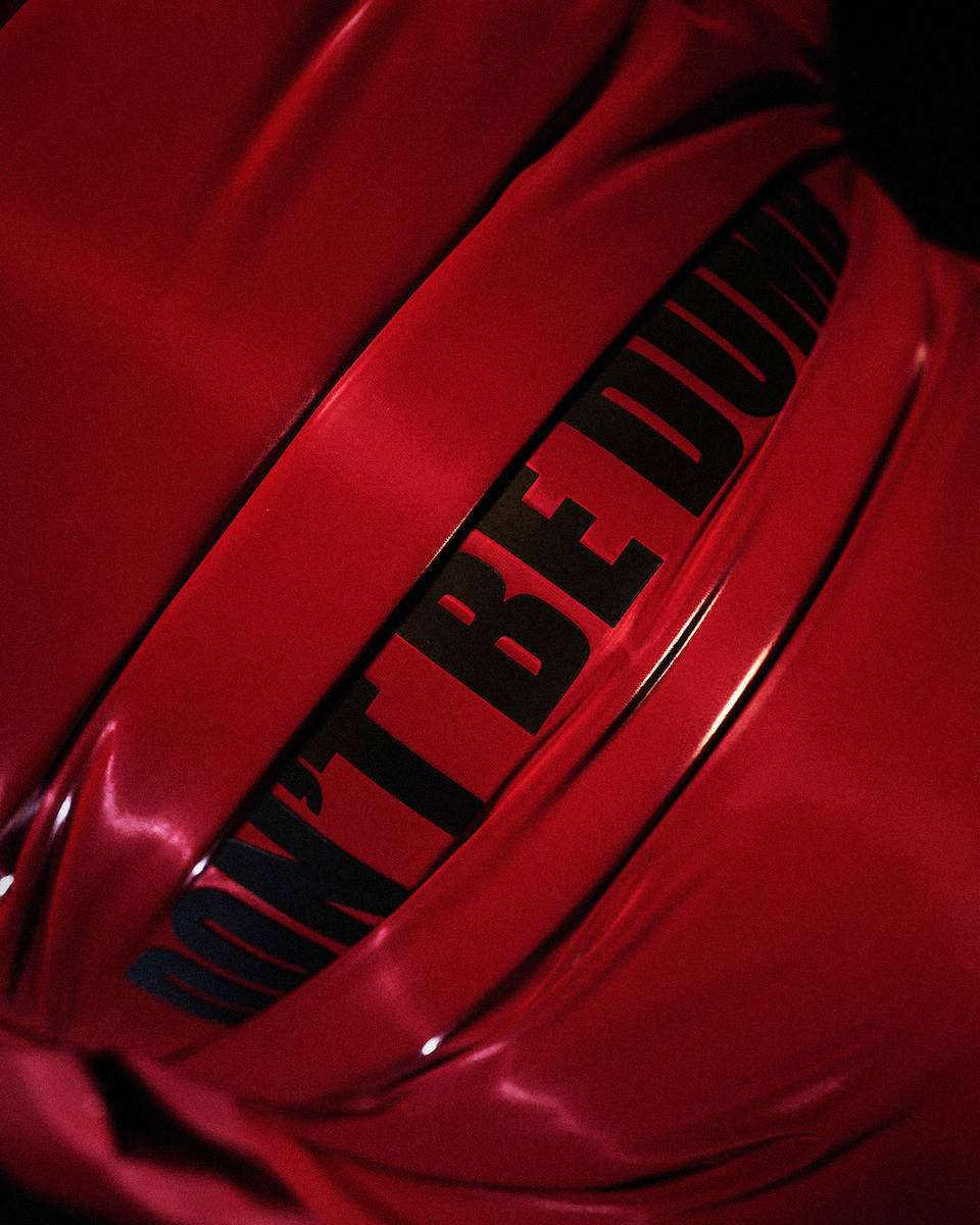 トラディショナルなキルティングを立体的なパターンで再構築したショートダウンジャケットをはじめ、クラシックなポロシャツのデザインを落とし込んだダウンジャケット、ベストとしても着用できるリバーシブル仕様のダウンジャケット、キルティングをプリントパターンで表現したロングスリーブTシャツ、オーバーサイズのシルエットが特徴のバミューダショーツなど、ビンテージのスキーウエアに着想したという“都会的なプロテクティブユニホーム”を用意。どのアイテムにも「モンクレール」と「アウグ」のロゴに加え、今秋にリリース予定のエイサップ・ロッキーの4thアルバムのタイトル名でもある“Don't Be Dumb”のグラフィックをデザインしている。