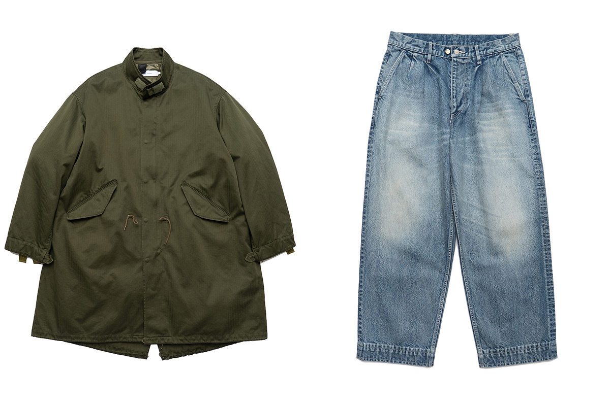 「グラフペーパー(GRAPHPAPER)」は、「N.ハリウッド(N.HOOLYWOOD)」とのコラボアイテムを2型制作。4年ぶりに実現した本コラボは、愛知県、岐阜県で複数店舗を展開するJB VOICEの30周年を記念したもの。アイテムは、両者の象徴的なアイテムを交換し、それぞれの視点で制作したモッズコートとデニムパンツをラインアップする。