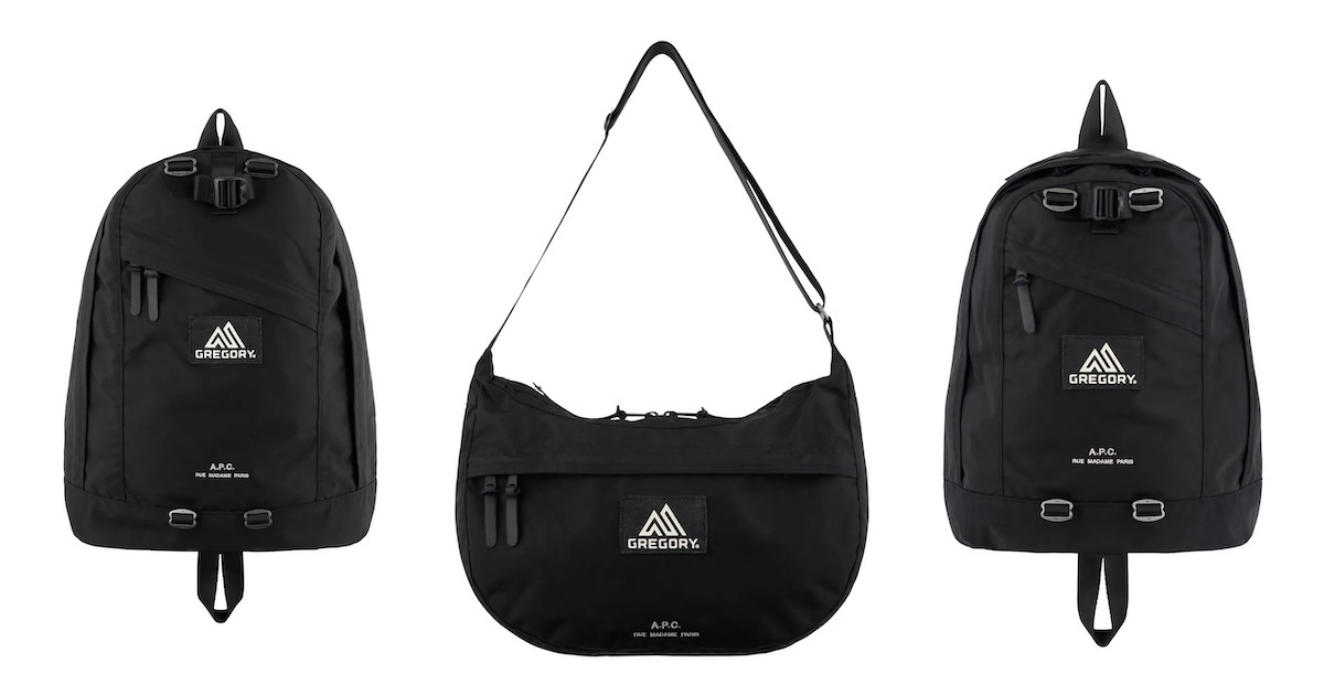 「アー・ペー・セー(A.P.C.)」から、「グレゴリー(GREGORY)」とのコラボコレクションが登場。アイテムは、ブラックナイロン素材を使用した2サイズのバックパックとサッチェルバッグを展開する。「グレゴリー」のバックパックが持つ機能的デザインとアウトドア由来の機能性に、「アー・ペー・セー」のミニマルなデニムのエッセンスを融合させることで、“アーバンハイキング(都市型ハイキング)”という独自の美学を表現した。