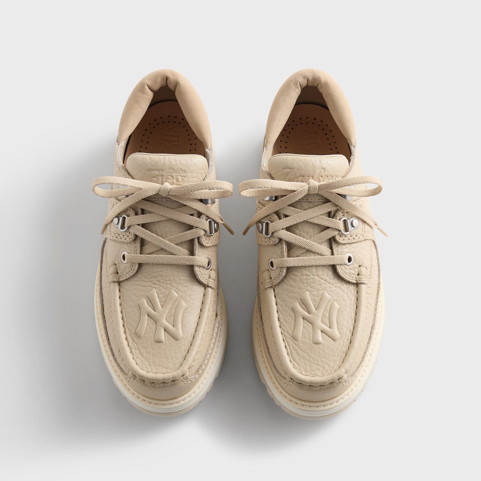 フットウエアは、「キス」を率いるロニー・ファイグ(Ronnie Fieg)、「クラークス オリジナルス(CLARKS ORIGINALS)」、ニューヨーク・ヤンキースのトリプルブランドによる“サンダーランド”の新作が登場。サンドとネイビーの 2色展開で、いずれも“Kennet グレインレザー”を採用した。また、アッパーのバンプ部分にはヤンキースのロゴを型押しで大胆にあしらった。