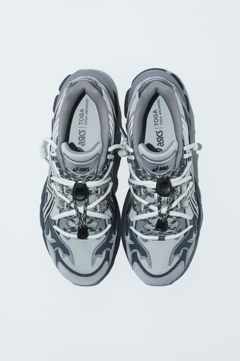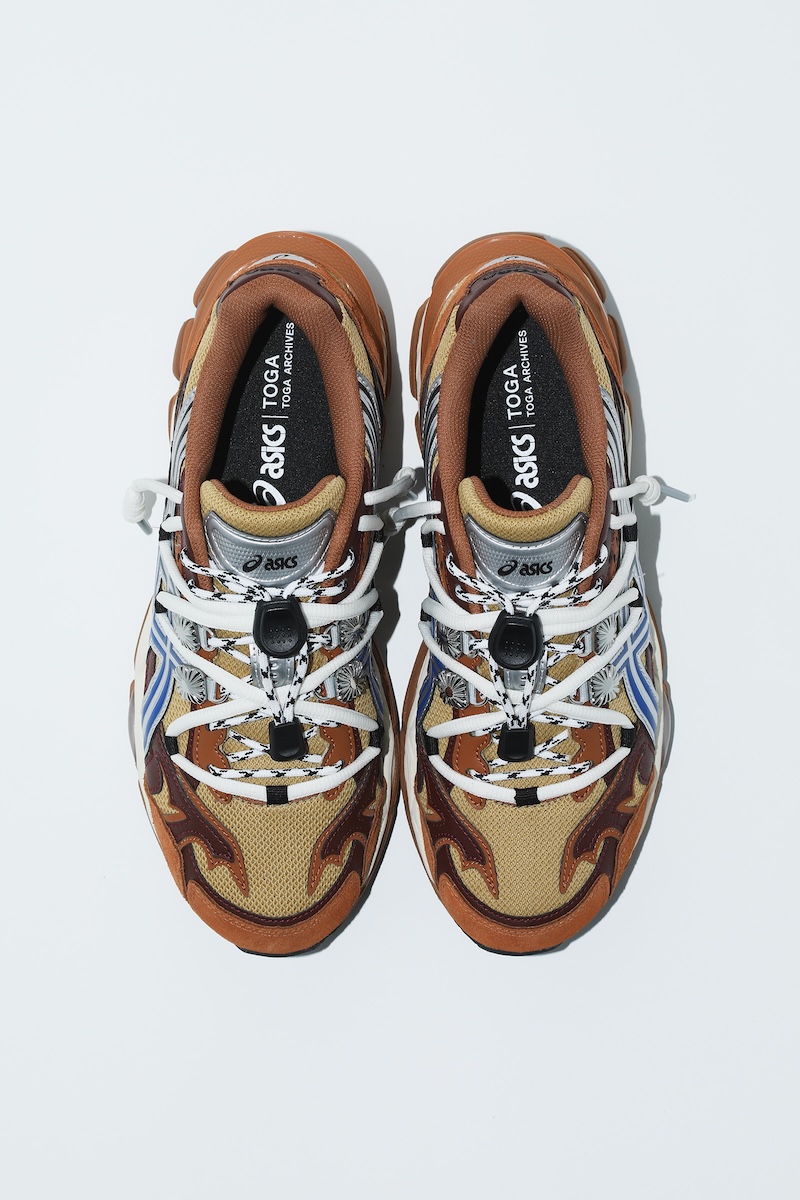 同アイテムは、「アシックス」の“ゲル キュムラス 16”をベースに両者の企画チームが2年の歳月をかけてデザインした。“ゲル キュムラス 16”の持つ機能性を維持しながら、「トーガ」のエレメントであるウェスタンディテール、スターメタルが加わった特別なアイテムに仕上げた。