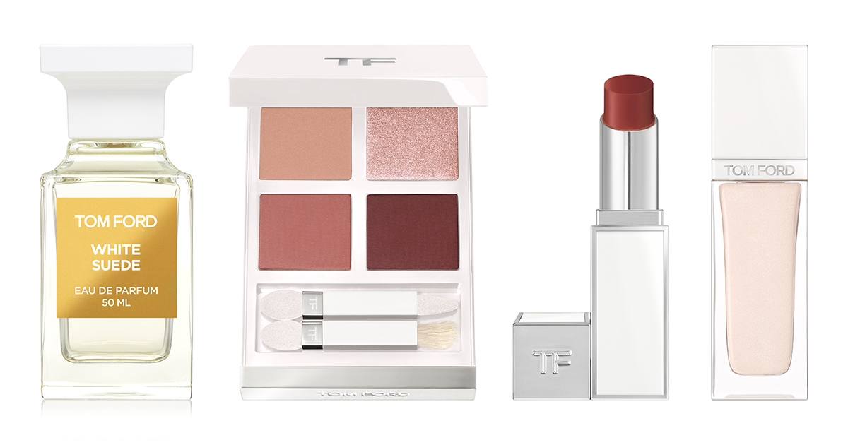 カシミアのように柔らかい質感が評価されているアイパレットの限定色“ソレイユ アイ カラー クォード”(1万3640円)は、肌になじむ3色のマットなバニラ、ピンク、プラムココアカラーが目元に熱を宿し、雪を照らし虹色に輝く陽光をプラスして仕上げる。“トムフォード クリーム ブラッシュ”(1万1000円)は、なめらかに頬に溶け込み、ぴたりと密着してクリームからパウダーへと変化する処方を採用。ソフトフォーカス効果で均一に艶めき、内側からにじむような熱を帯びた艶を演出する。