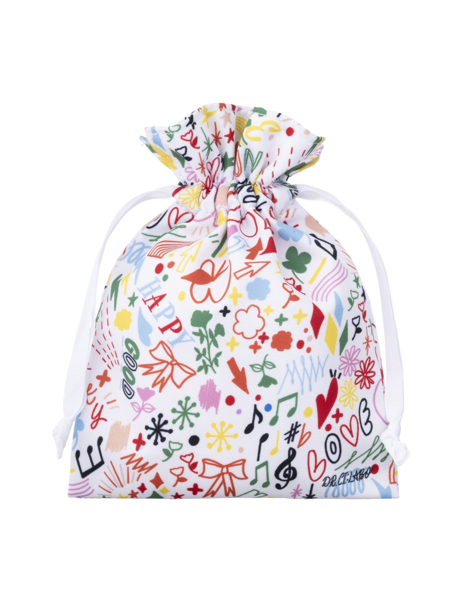 “ドクターシーラボ×SHOGO SEKINE ラッキーバック 2025(透明感ケアセット)”(8580円)は、“VC100エッセンスローションEX”(150mL)、“VC100エマルジョンEX”(150mL)、“VC100ホットピールKEANAクレンジング”(18g)をオリジナルポーチに収めた、透明感のある肌へ導く限定のスキンケアセット。アイテムは、カラフルなモチーフとメッセージを散りばめた、SHOGO SEKINEデザインのオリジナル巾着袋に詰め込んだ。