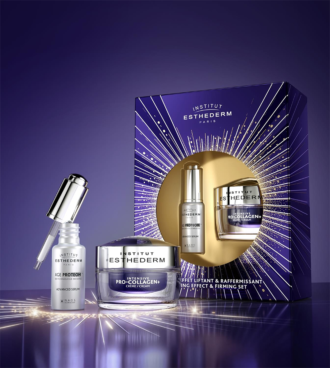 “ホリデーコフレ インテンシブ PRO+”は、4種のペプチドとキシロースを配合し、肌の全方位ケアでハリと艶を与える、2024年ベストコスメ受賞の“インテンシブ PRO+ クリーム”(50mL)現品と、エージプロテオムは美肌の鍵となるプロテインに着目した美容液で、スノーバクテリアから抽出したバクテリオルベリンを配合している23年ベスコス受賞製品“エージプロテオム”(15mL)のハーフサイズを組み合わせている。