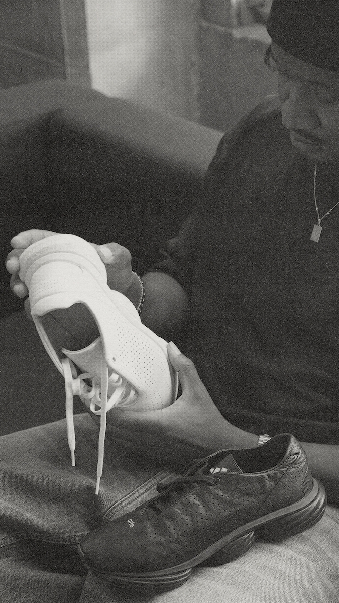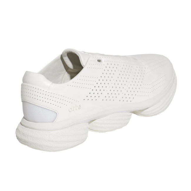 記念すべき第1弾コラボは、日本初展開となる新作スニーカー“ライトブレイズ ポッド(LIGHTBLAZE POD)”のオールホワイトカラーを用意した。価格は2万7500円で、「アディダス」の公式アプリ「コンファームド(CONFIRMED)」でのみ取り扱い中だが、購入には専用の“コード”が必要となる。まずは、ベルトニー「アルテ アントワープ」創設者兼クリエイティブ・ディレクターをはじめ、「アディダス」契約アスリートのラファエル・レオン(Rafael Leao)やヌーノ・メンデス(Nuno Mendes)、ミュージシャンのジェイ・パーク(Jay Park)やDJ RYOTAらがSNSで発信している“コード”を受け取り、その後、自身でも“コード”を作成して他2人に伝えると購入権を得ることができるという。