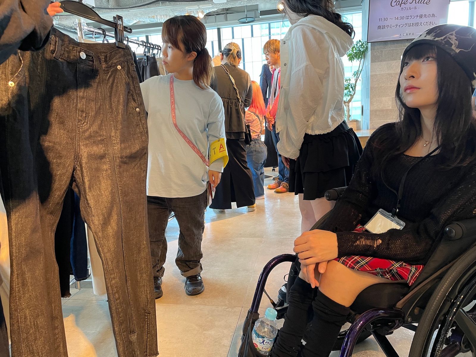 「今はグランジや地雷界隈系のファッションが気分なので、実は今回の『ローリーズファーム』で出てジーンズはあまり興味がなかったけど、実際に試着してみて驚いた。様々な工夫が凝らしてあってはきやすいことはもちろんだけど、すごく柔らかい生地でストレッチもきいているので着心地もいい。これなら褥瘡も気にしなくていいかもと気付いた。着れない服は多いけど、実際には探すことも楽しんできた。ただ、選択肢が広がることで、新しいファッションに挑戦するきっかけになったのは新しい感覚だった。インクルーシブウエアという誰もが着やすい服が広がることで、ファッションはもっと楽しくなるし、楽しめる人が増えると思う」。