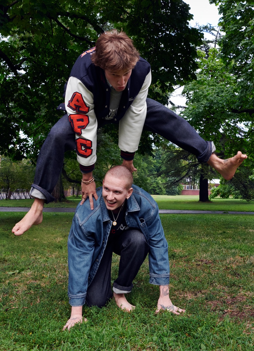 今回の協業は、1990年代にそれぞれ自身のブランドを立ち上げた「アー・ペー・セー」のジャン・トゥイトゥ(Jean Touitou)=創業デザイナー、そしてシグニチャーブランドを手掛けるマーク・ジェイコブス(Marc Jacobs)=デザイナーの長年の交流から実現。コレクションでは、二人のデザイナーとしての原点である80年代を再解釈し、パリとニューヨークのアーカイブ要素も取り入れたカレッジスタイルを特徴としている。