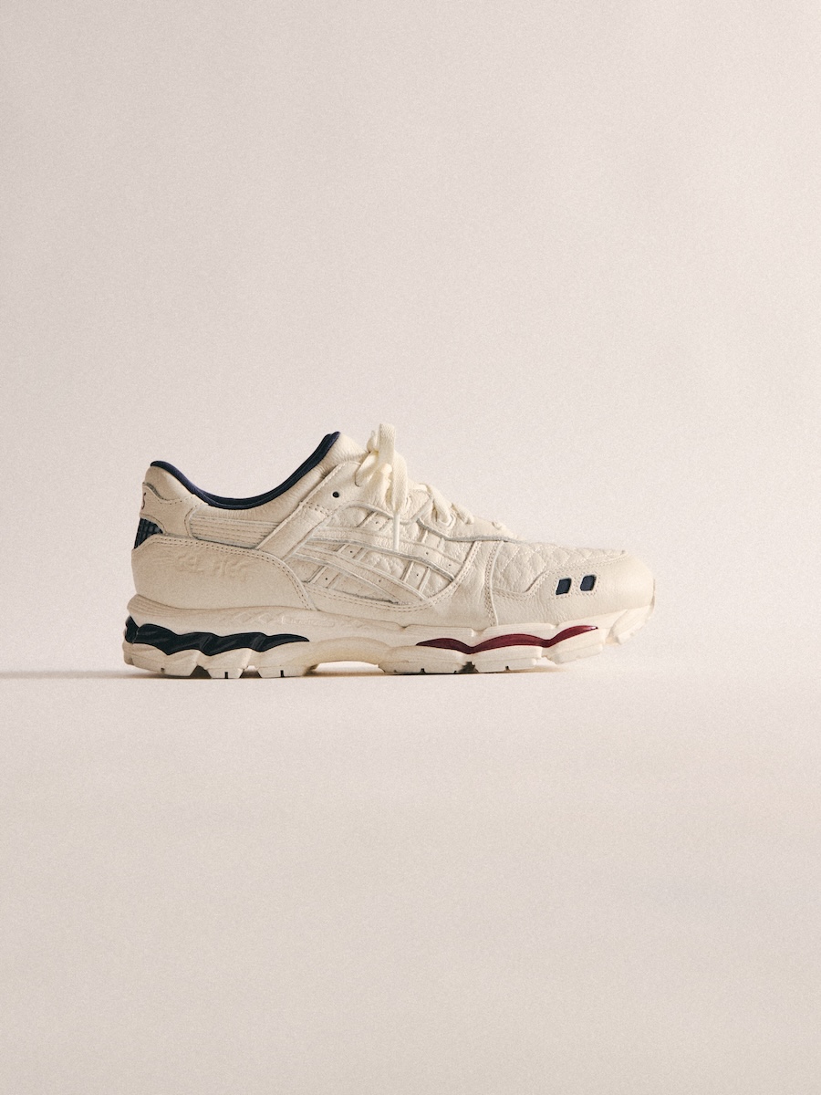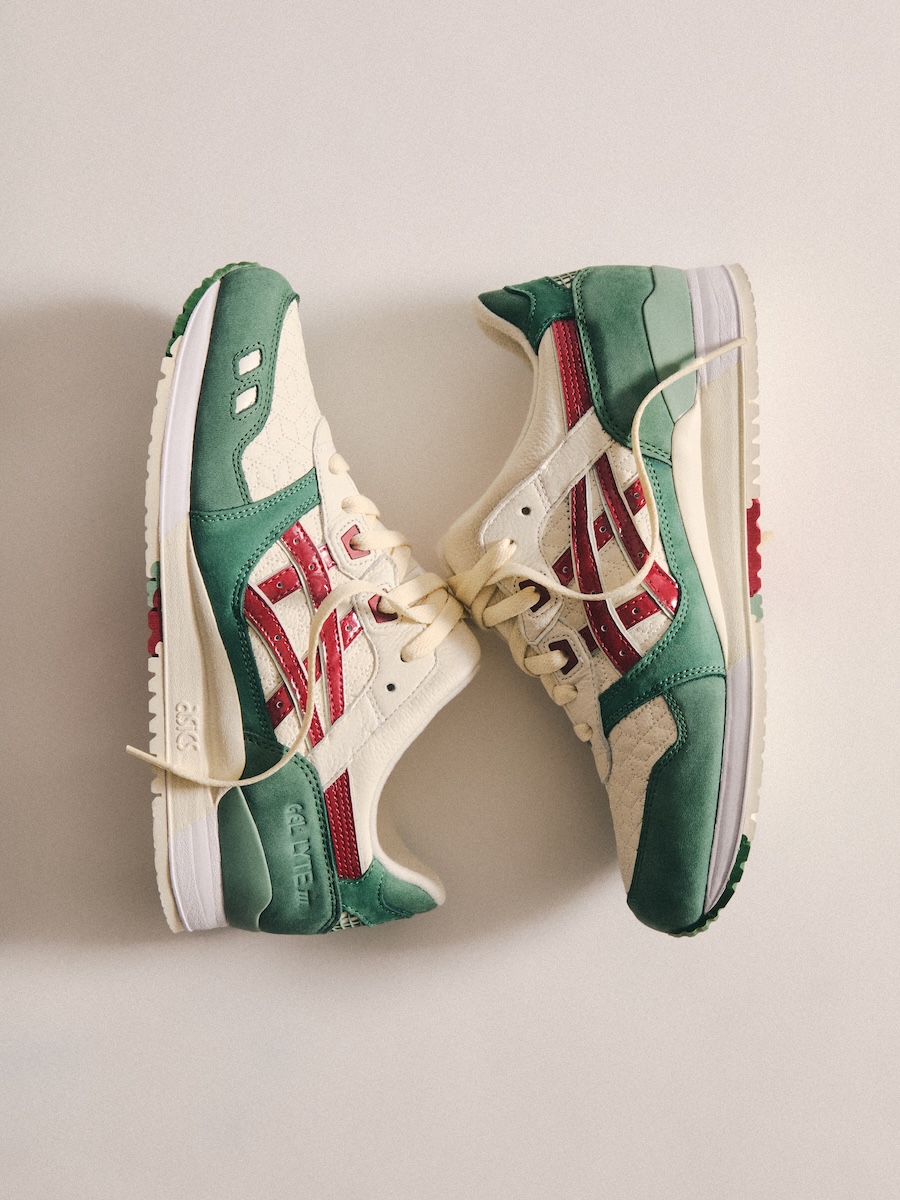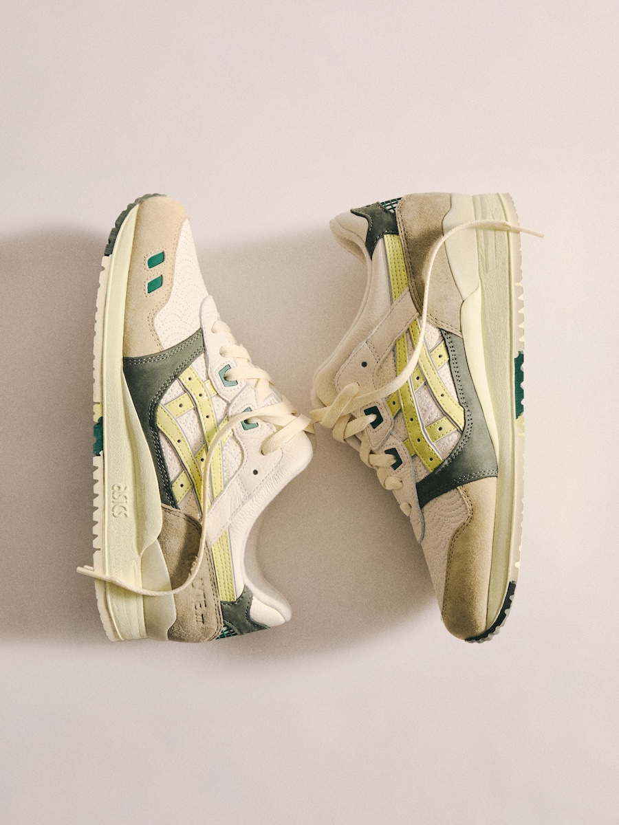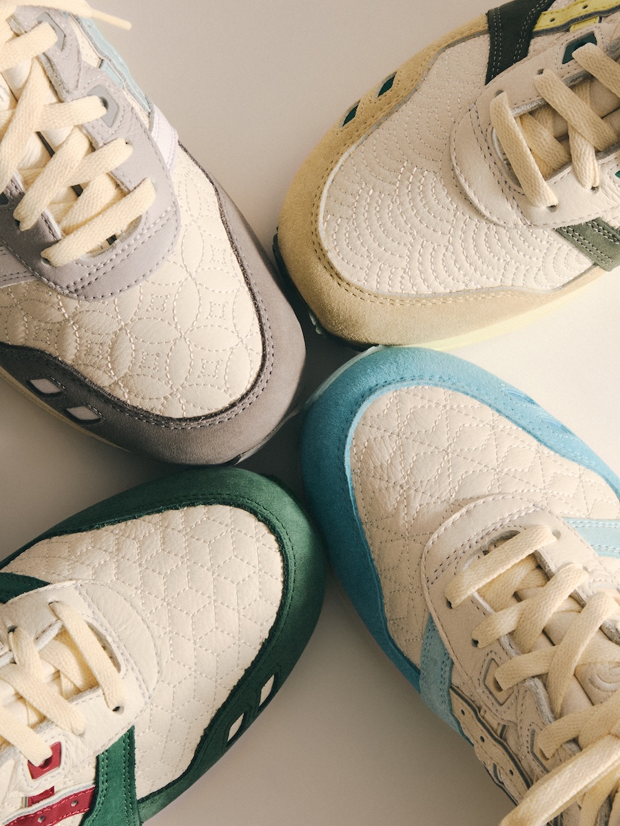 スニーカーは、“ワールド フェア(WORLD’S FAIR)”コレクションと題し、“万国博覧会(WORLD’S FAIR)”がテーマ。キルティングを施したアンダーレイに、パテントレザーの“タイガーストライプ”、スプリットタンを合わせた“ゲルライト スリー(GEL-LYTE III)”の“ブラジル(BRAZIL)”“サウス コリア(SOUTH KOREA)”“イタリー(ITALY)”“カナダ(CANADA)”モデルや、“ゲルマイ(GEL-MAI)”を再解釈し、“フューズゲル(FUZEGEL)”テクノロジーを採用、メッシュのアンダーレイとシンセティッ‬クレザーのオーバーレイを合わせた“ロニー ファイグ 0.1(RONNIE FIEG’S. 0.1)”バージョンの“ジャパン(JAPAN)”モデル、アメリカへのオマージュとしてデザインした“ゲルカヤノ 12.1(GEL-KAYANO 12.1)”、1900年パリ万博を讃えるアートワークを配した“ゲルライト 3.1(GEL-LYTE 3.1)”、“ゲルカヤノ 14(GEL-KAYANO 14)”の“シカゴ(CHICAGO)”モデルなどを制作した。なお“シカゴ”と“フランス(FRANCE)”“ユナイテッド ステーツ(UNITED STATE)”モデルは、国内での取り扱いはない。