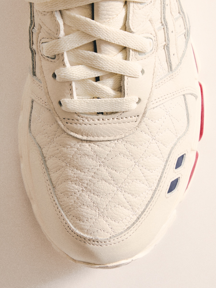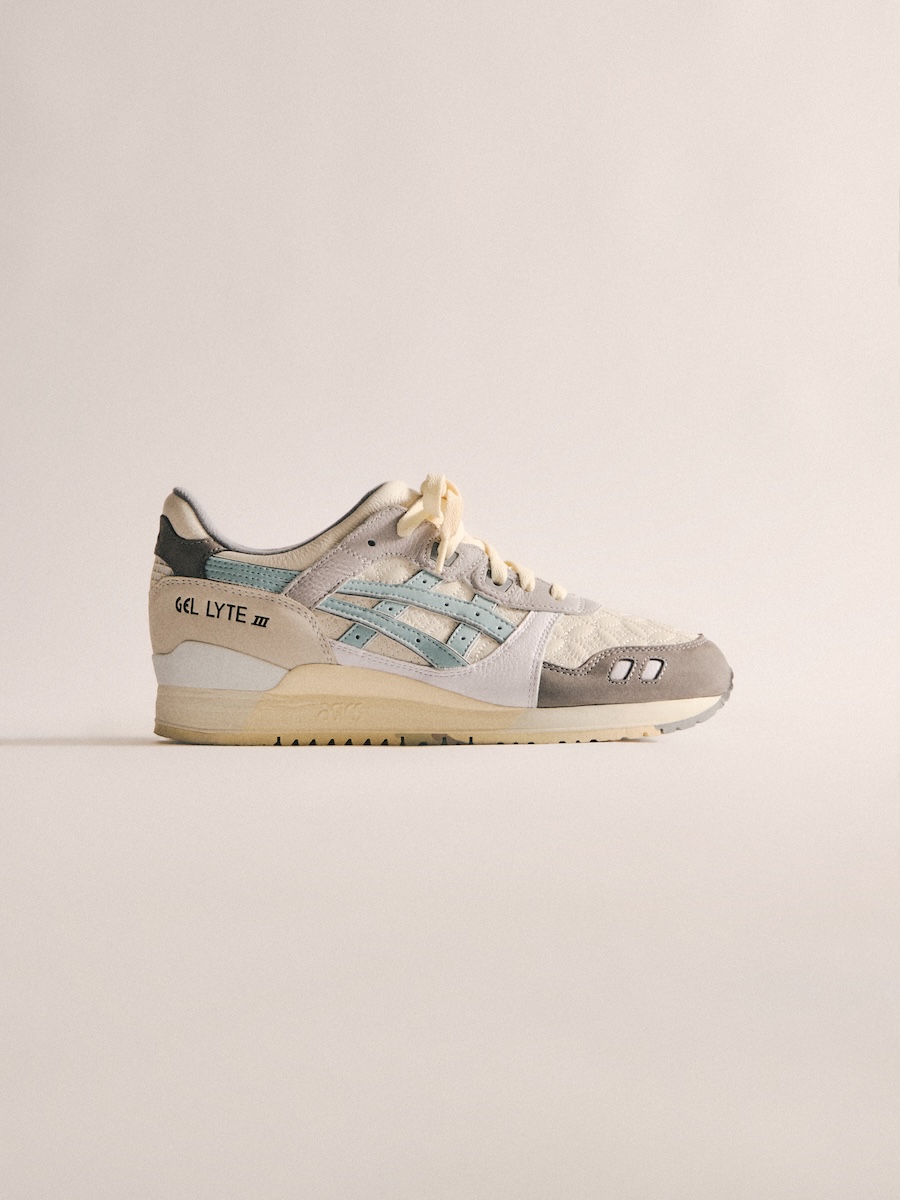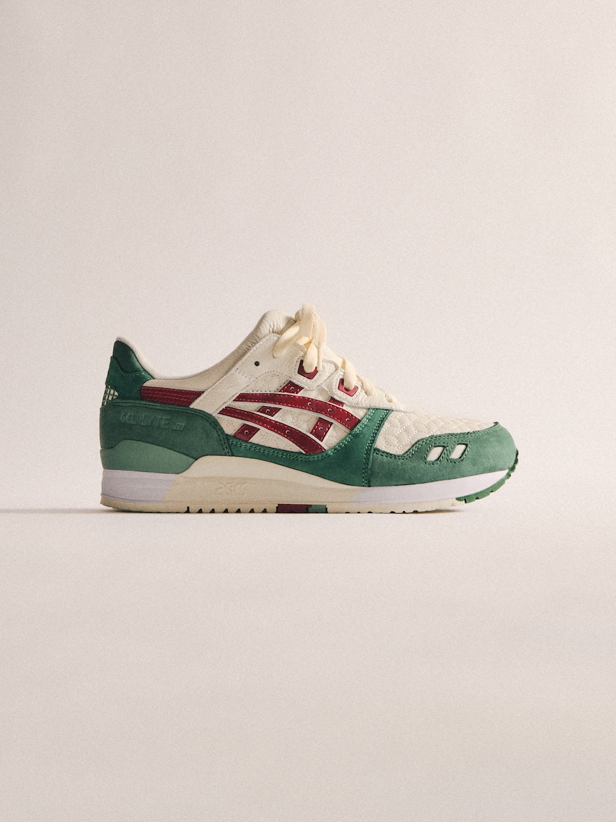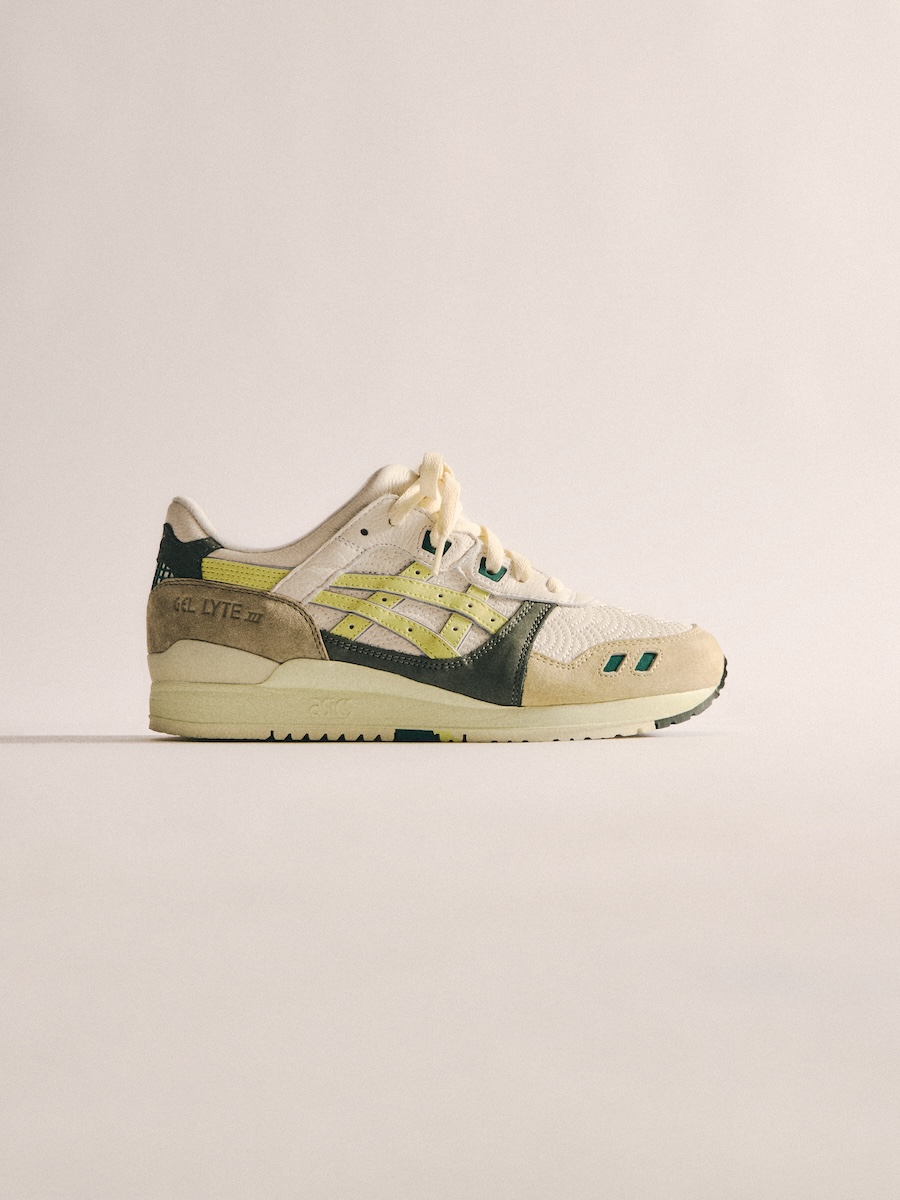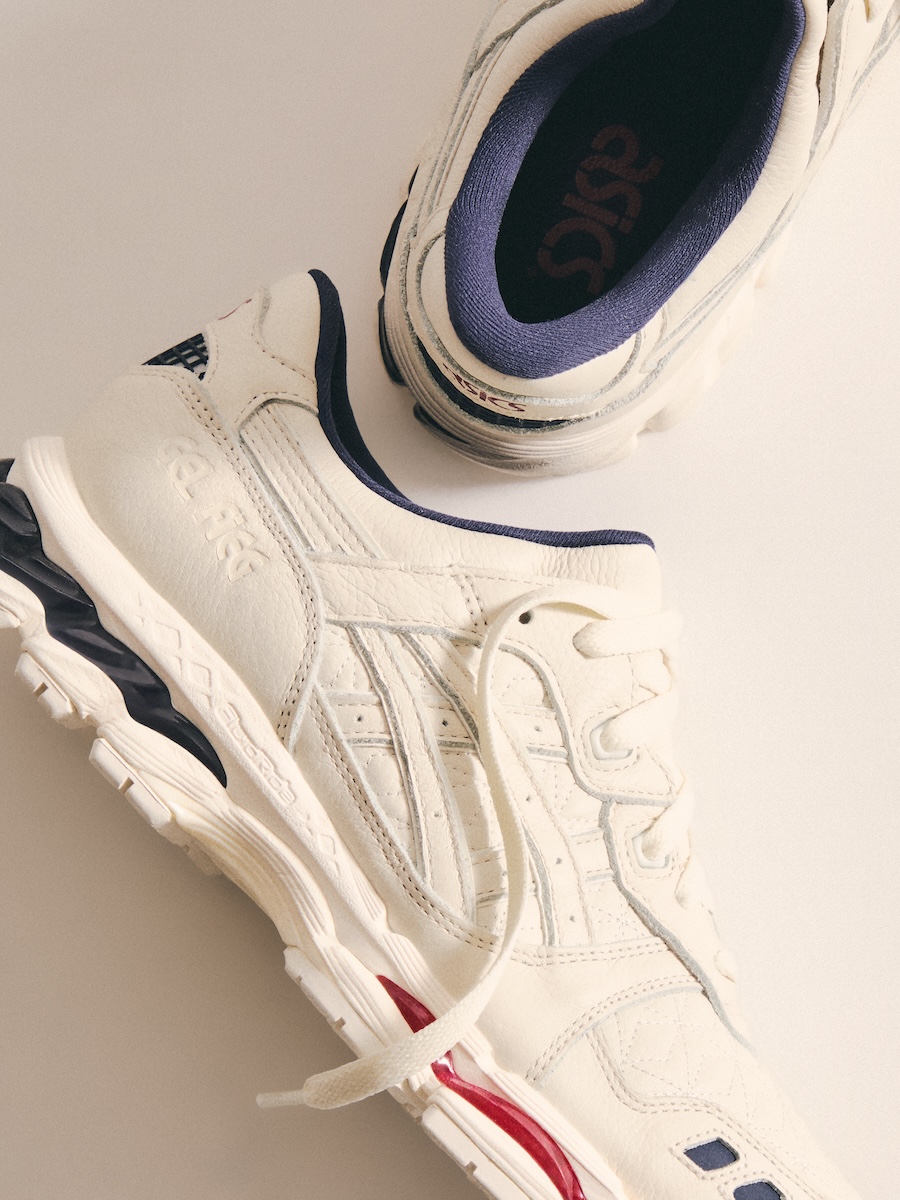 スニーカーは、“ワールド フェア(WORLD’S FAIR)”コレクションと題し、“万国博覧会(WORLD’S FAIR)”がテーマ。キルティングを施したアンダーレイに、パテントレザーの“タイガーストライプ”、スプリットタンを合わせた“ゲルライト スリー(GEL-LYTE III)”の“ブラジル(BRAZIL)”“サウス コリア(SOUTH KOREA)”“イタリー(ITALY)”“カナダ(CANADA)”モデルや、“ゲルマイ(GEL-MAI)”を再解釈し、“フューズゲル(FUZEGEL)”テクノロジーを採用、メッシュのアンダーレイとシンセティッ‬クレザーのオーバーレイを合わせた“ロニー ファイグ 0.1(RONNIE FIEG’S. 0.1)”バージョンの“ジャパン(JAPAN)”モデル、アメリカへのオマージュとしてデザインした“ゲルカヤノ 12.1(GEL-KAYANO 12.1)”、1900年パリ万博を讃えるアートワークを配した“ゲルライト 3.1(GEL-LYTE 3.1)”、“ゲルカヤノ 14(GEL-KAYANO 14)”の“シカゴ(CHICAGO)”モデルなどを制作した。なお“シカゴ”と“フランス(FRANCE)”“ユナイテッド ステーツ(UNITED STATE)”モデルは、国内での取り扱いはない。
