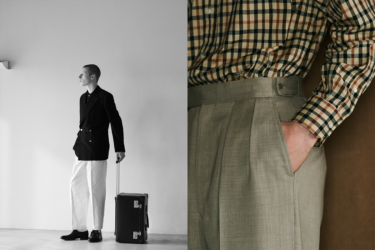 「ダックス(DAKS)」は、「サイ(SCYE)」とのコラボコレクション第2弾を制作。1934年に誕生した世界初のベルトレス・スラックス“ダックストップ”を「サイ」のオリジナルパターンで再構築した“ダックストップ トラウザーズ”(6万4900円)をはじめ、英国のクラシックなスタイルをアップデートしたアイテムをそろえる。