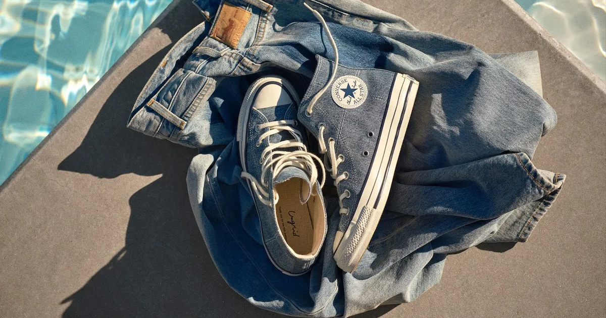 マークスタイラーが展開するブランド「アングリッド(UNGRID)」はブランド設立15周年を記念し、「コンバース(CONVERSE)」とコラボレーションした“コンバース コラボデニム オールスター エイジド ハイ”を用意する。同アイテムは、「アングリッド」で人気を集めるリメイクデニムと同じデニムを使用し、色味や風合いもリメイクデニムをイメージしたコラボならではの一足に仕上げた。