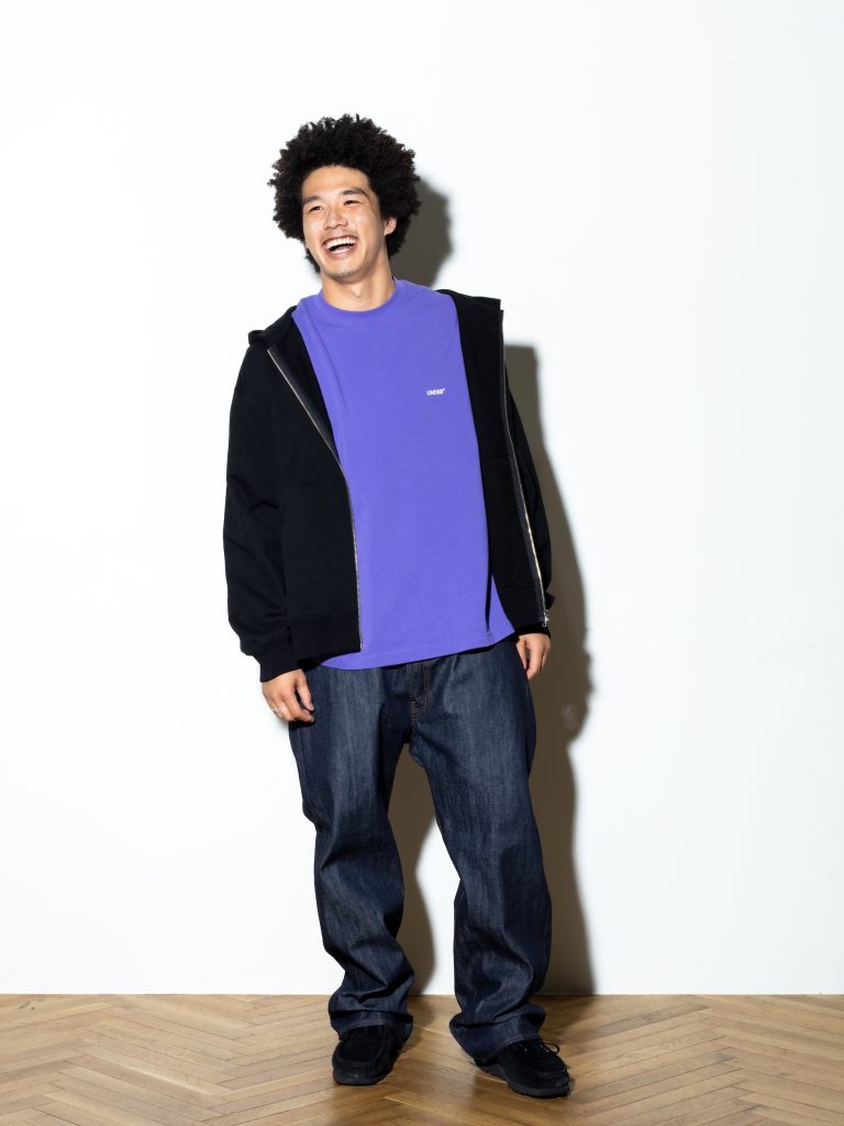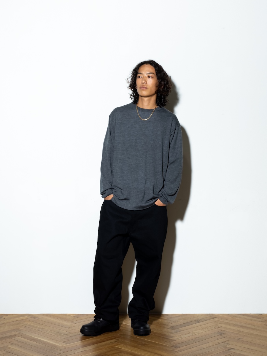 ボクシーなシルエットのシャツ(4万2900円)は、ルーズなサイズ感で抜け感を演出。14オンスのセルビッチデニムを使用したジーンズ(3万1900円)は、ウエストとヒップやワタリにゆとりを持たせ、裾にかけてテーパードを利かせた独自のシルエット。シボ感の少ないカウレザーを使用したレザージャケット(13万2000円)は、丁寧になめすことで柔らかな着心地を実現した。ワンポイントのロゴを配したTシャツ(8800円)は、生地表面にはほどよいムラがあり、襟ぐりにはコットンとポリエステルを混紡したフライス生地を配して、伸縮性が高く着脱しやすい仕様にこだわった。フーディ同様、ウォッシュ加工とタンブラー乾燥を施しているため、繰り返しの洗濯にも耐え、タフに着用できる。
